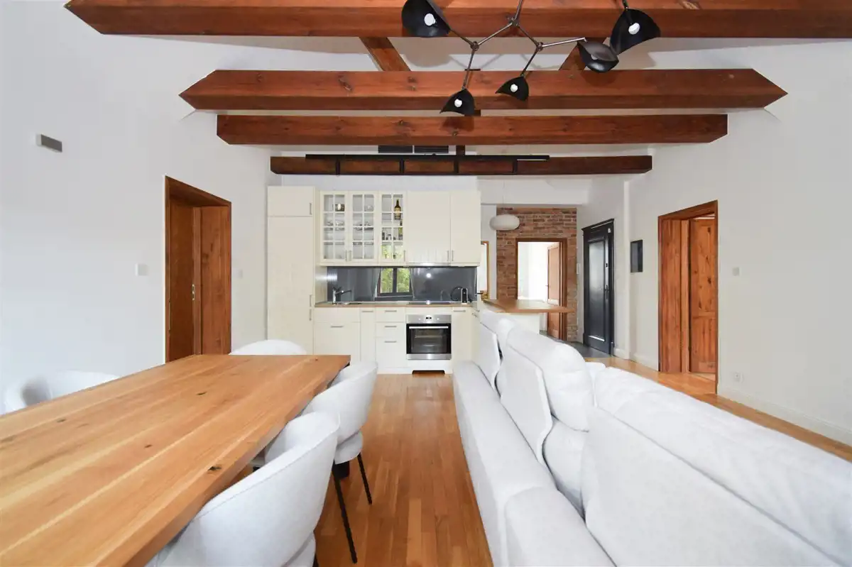 Long-term rental (minimum 12 months contract ) Location: Małopolska Street is a place located opposite one of the most beautiful parks in Poznań - Sołacki Park. An ideal place for active leisure - walking and cycling routes. In addition, in the immediate vicinity there is Lake Rusałka (about 1.5 km), and a bit further Lake Strzeszyńskie and Kierskie. Małopolska Street is perfectly connected. The nearest tram stop is only 120 m away. In the immediate vicinity there are restaurants, shops, and the University of Life Sciences. Due to the nature of the buildings, the proximity of the park and the location in the center of Poznań, the area is considered the most prestigious in the city. Rental price: PLN 8000 / month + ca. PLN 880 admin fee (includes advance payment for cold water and garbage fee for 1 person)+ utility costs (gas and electricity) Deposit: PLN 16,000