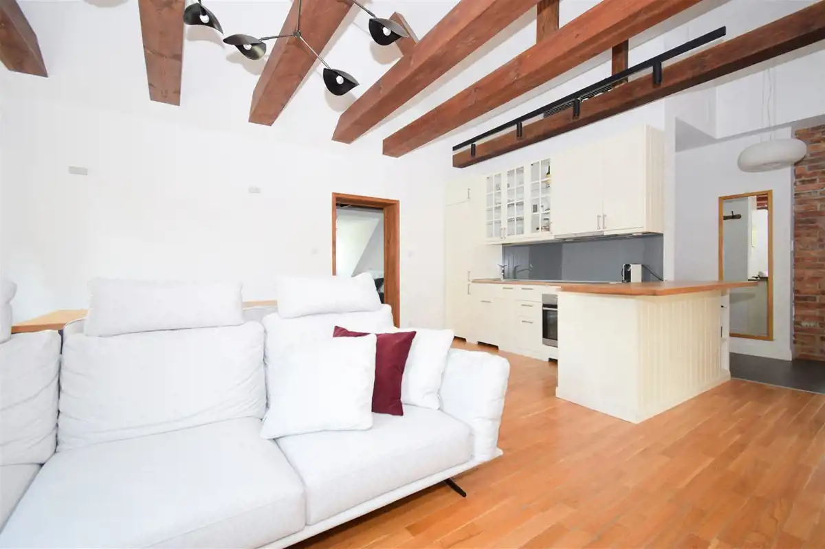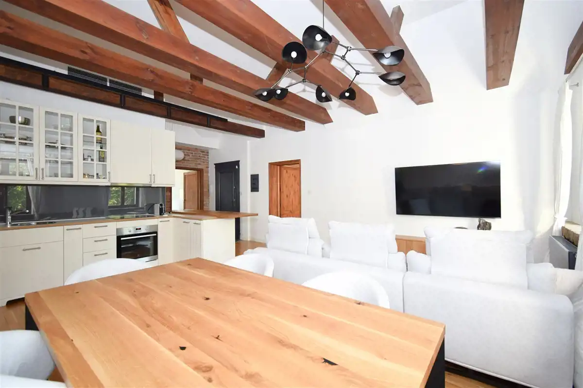 Apartament jest wykończony w wysokim standardzie i jest całkowicie umeblowany. Ma ok 102 mkw powierzchni użytkowej.