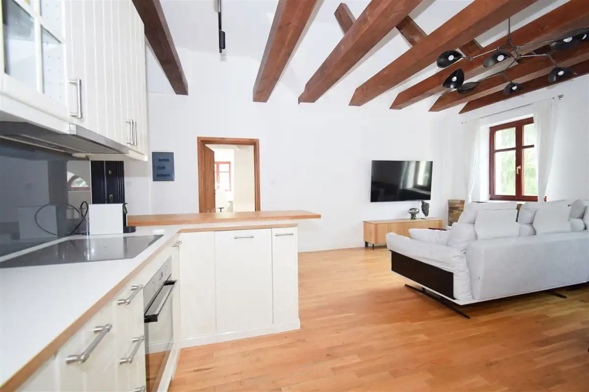 Wykończenie/wyposażenie nieruchomości: Kuchnia w zabudowie wraz ze sprzętem AGD (lodówko-zamrażarka, piekarnik, zmywarka).