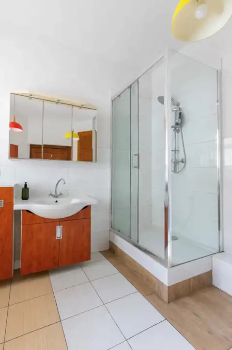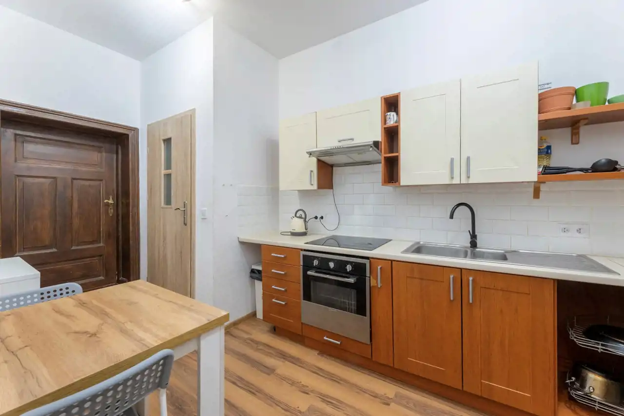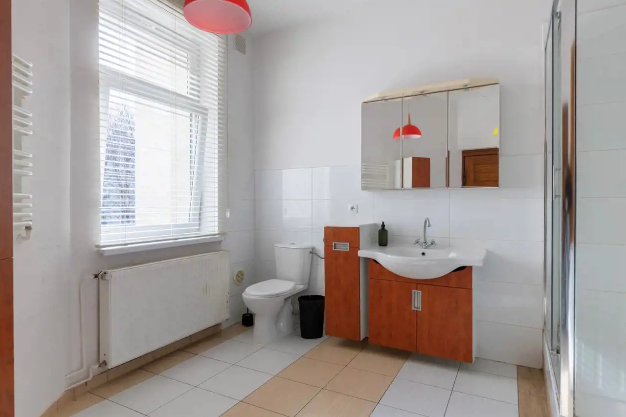 po remoncie w 2022r.: wymienione wszystkie instalacje, nowe gładzie na ścianach i sufitach. Nowoczesny kocioł gazowy 2 - funkcyjny firmy Junkers. Na podłogach w pokojach i kuchni panele podłogowe, w łazience płytki. Łazienka z oknem, przestronna - 11m2, nowoczesna, z płytkami, z dużą kabiną prysznicową, z dużą pralką. Kuchnia kompletnie wyposażona, z meblami, z AGD: Stolarka drzwiowa wewnętrzna nowego typu. Okna drewniane, historyczne, odnowione.