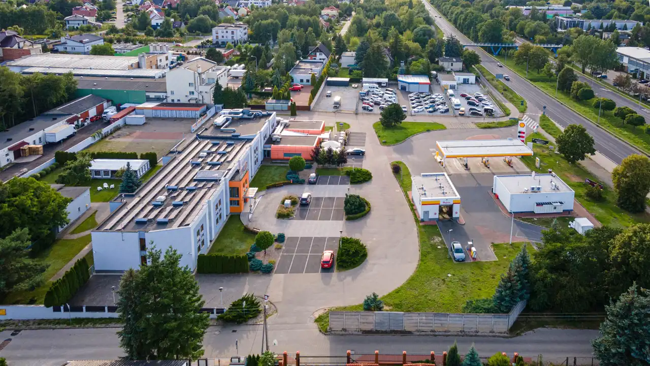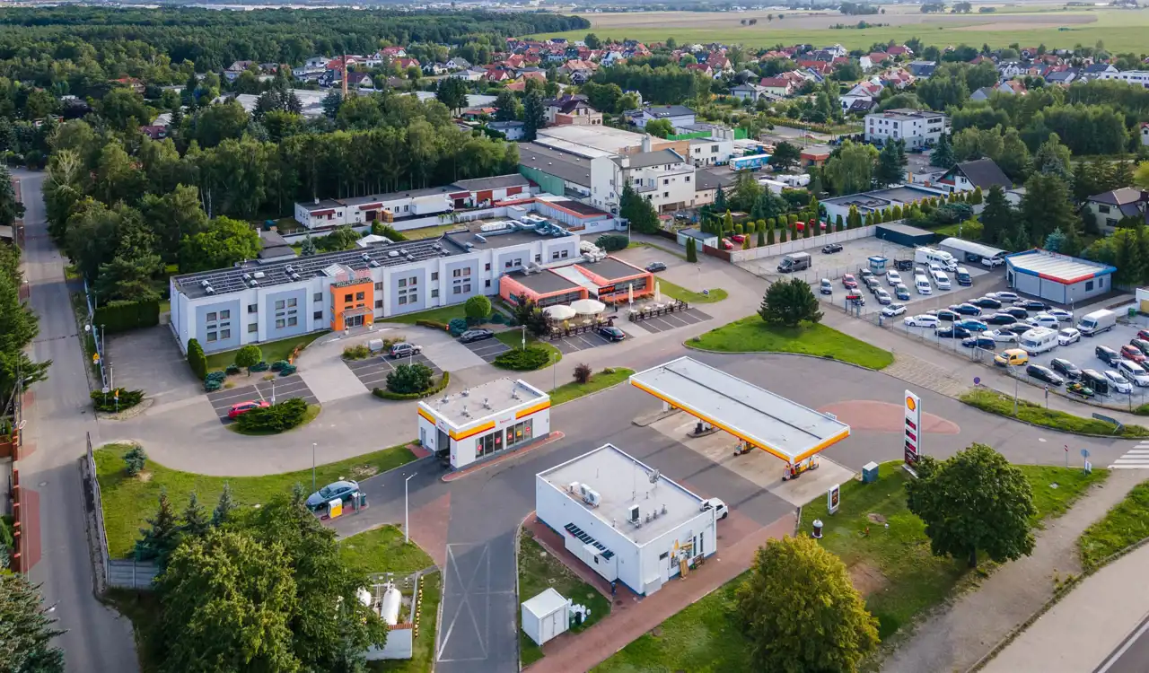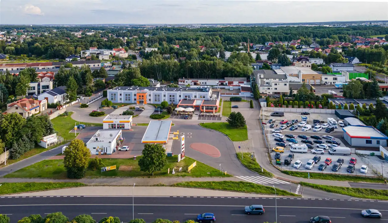 hotel z restauracją oraz zabudowania magazynowe. Nieruchomość położona jest 0,8 km od granicy Poznania i 11 km. od centrum miasta ( Stary Rynek ) na działce o powierzchni 6347 m2.