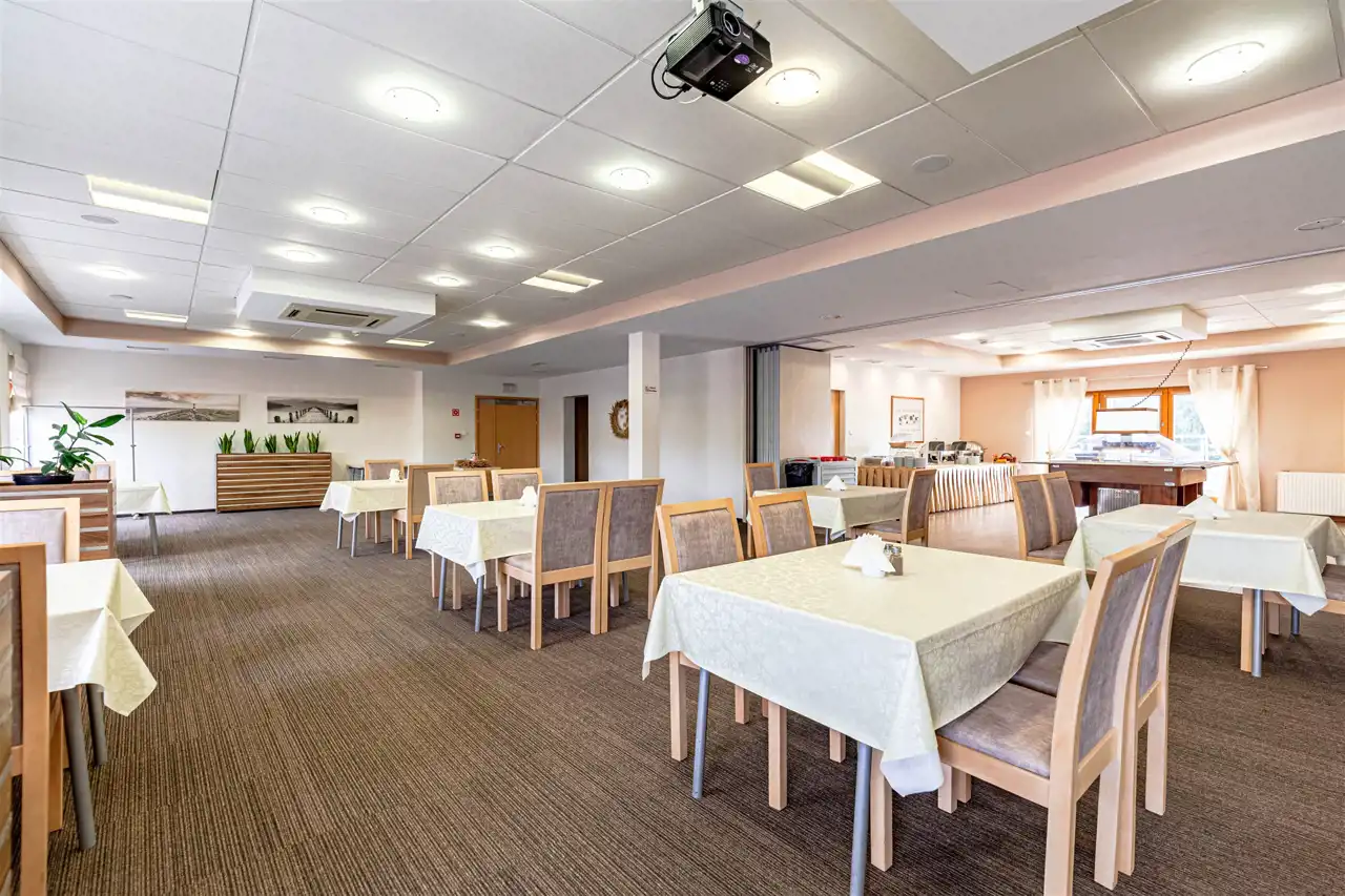 2 klimatyzowane sale bankietowo - konferencyjne dla 30 i ponad 100 osób. Sale są klimatyzowane z pełnym wyposażeniem multimedialnym, jedna z sal posiada taras.