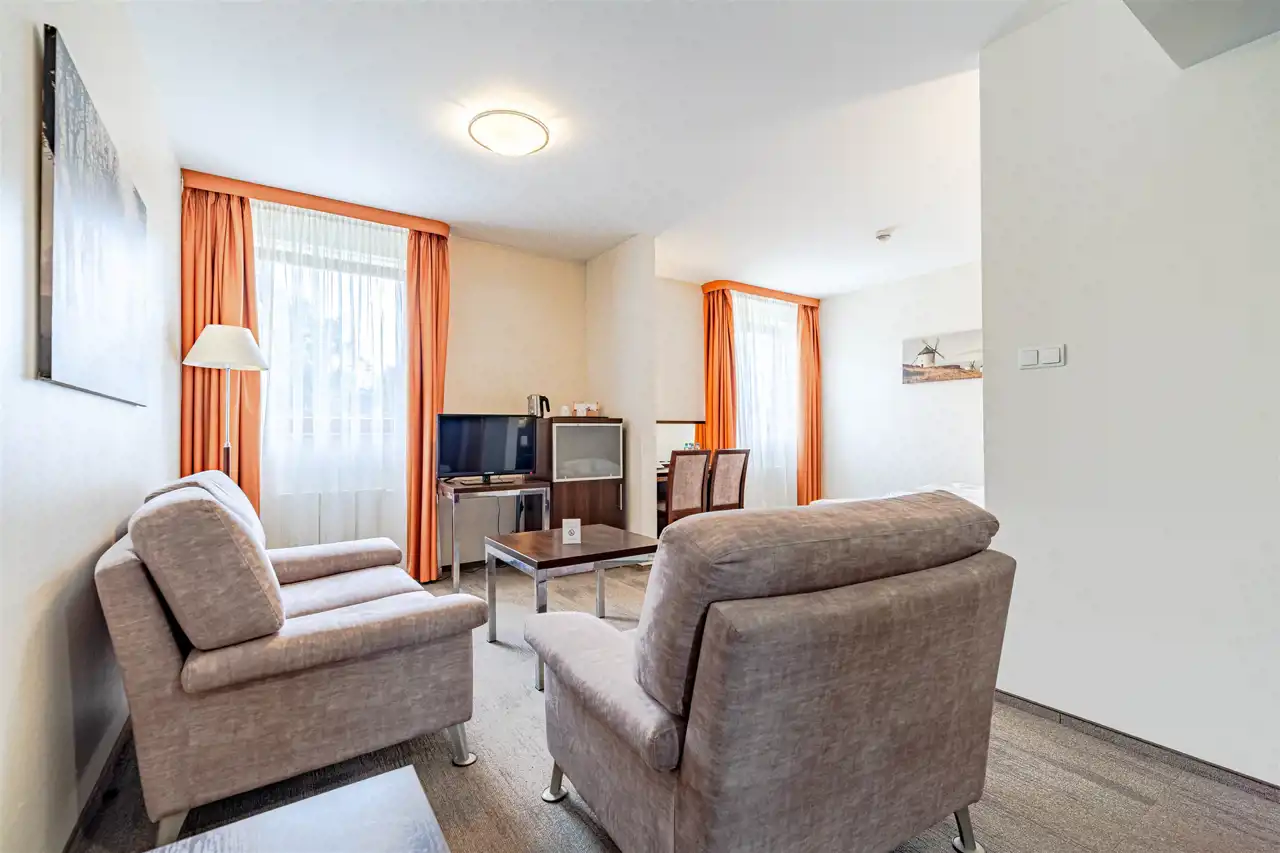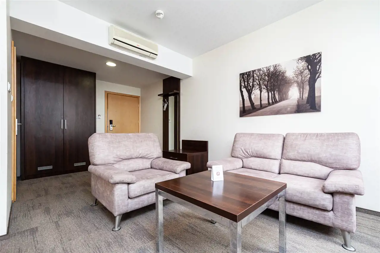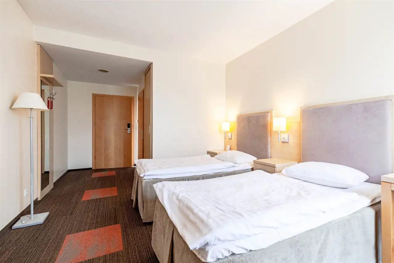 42 pokoje dwuosobowe ( w tym 1 pokój przystosowany dla osób niepełnosprawnych i 2 klimatyzowane apartamenty )