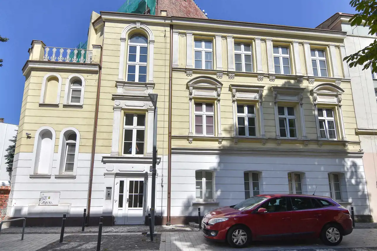 Pierwszy to bardzo ładnie utrzymana, dwupiętrowa kamienica z 1910 roku, wykorzystywana jako budynek biurowy, z pięknymi, wysokimi pomieszczeniami piwnicznymi o łukowych sklepieniach i użytkowym strychem.