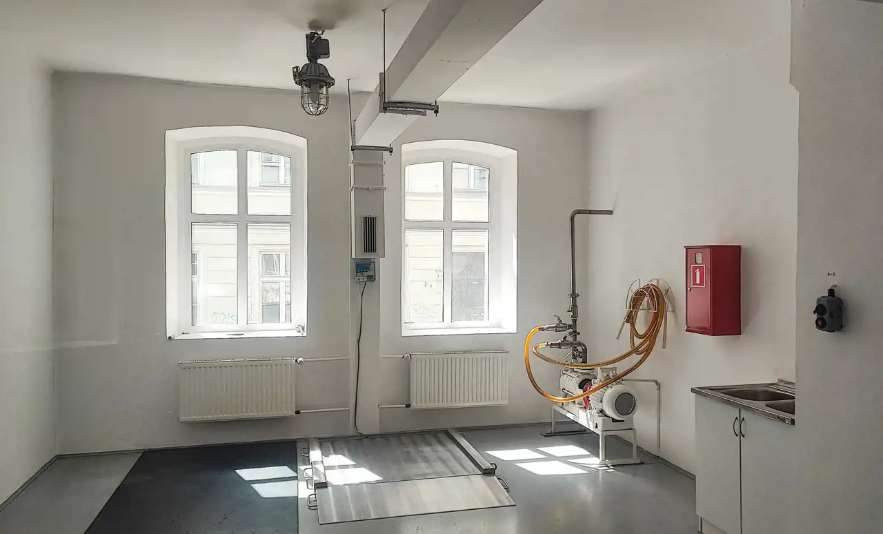Ta nieruchomość ma 958,12 mkw powierzchni użytkowej i 1079,63 mkw powierzchni całkowitej z piwnicami i klatkami schodowymi. Tutaj znajduje się duża winda przemysłowa.