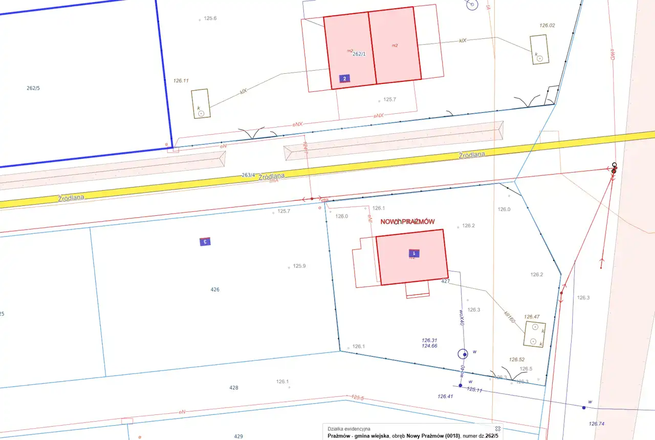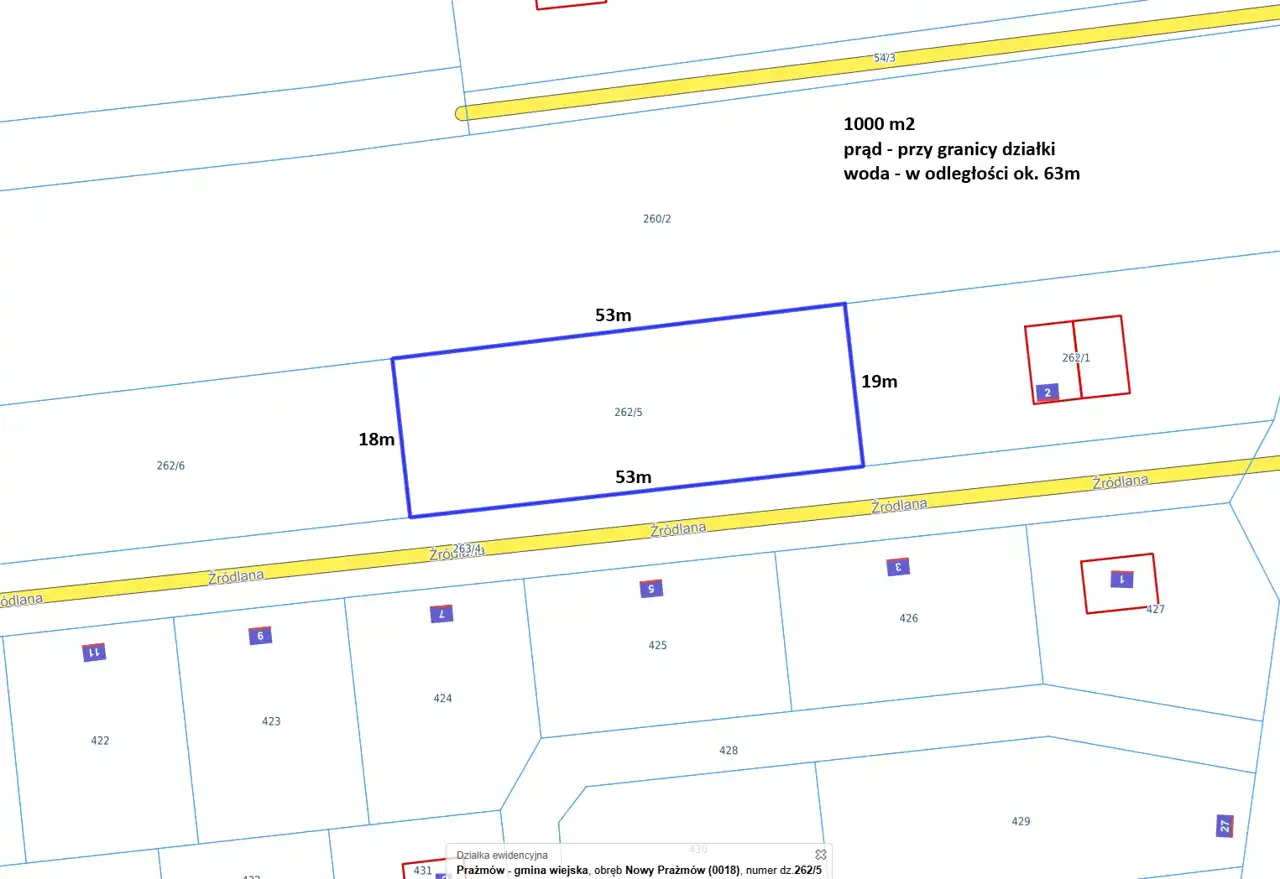 - Media Woda: w ulicy; Kanalizacja: brak; Prąd: w ulicy; Gaz: brak