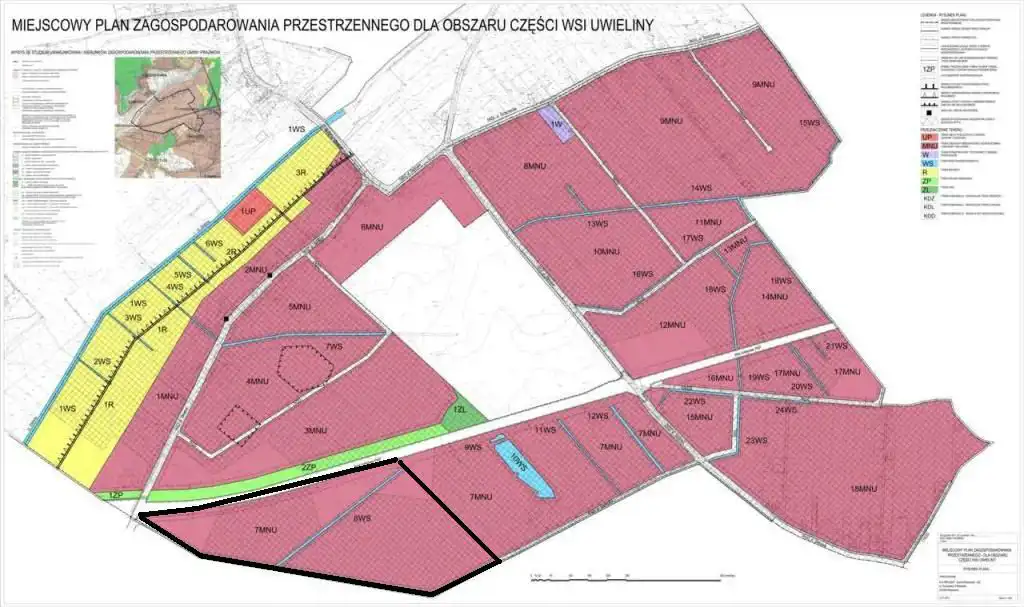 Plan zagospodarowania przestrzennego przewiduje tereny zabudowy mieszkaniowej jednorodzinnej i zabudowy usługowej – oznaczone symbolem literowym MNU: