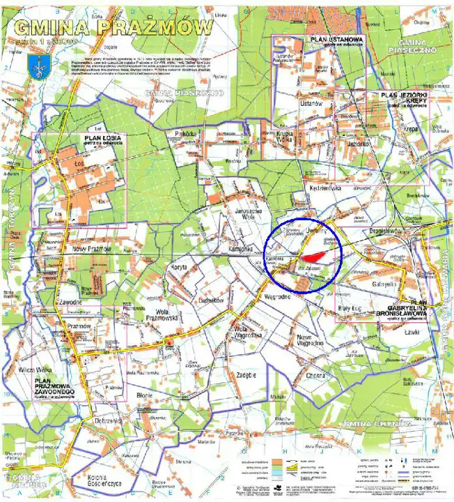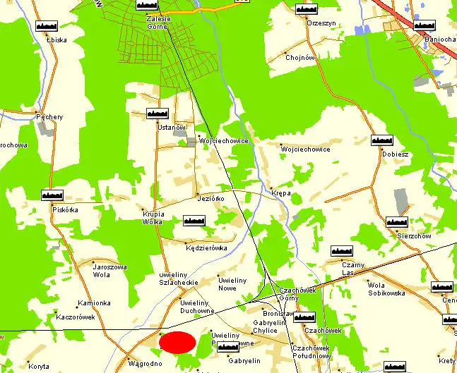 Działka położona jest przy ulicy Leśnej we wsi Uwieliny, w gminie Prażmów, zaledwie 22 km od Warszawy.