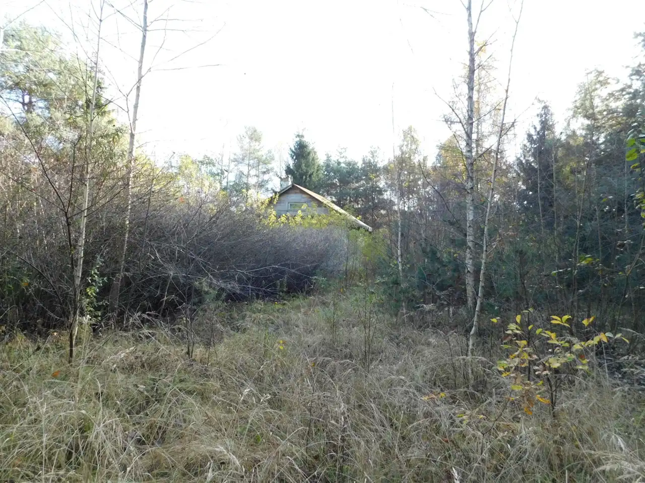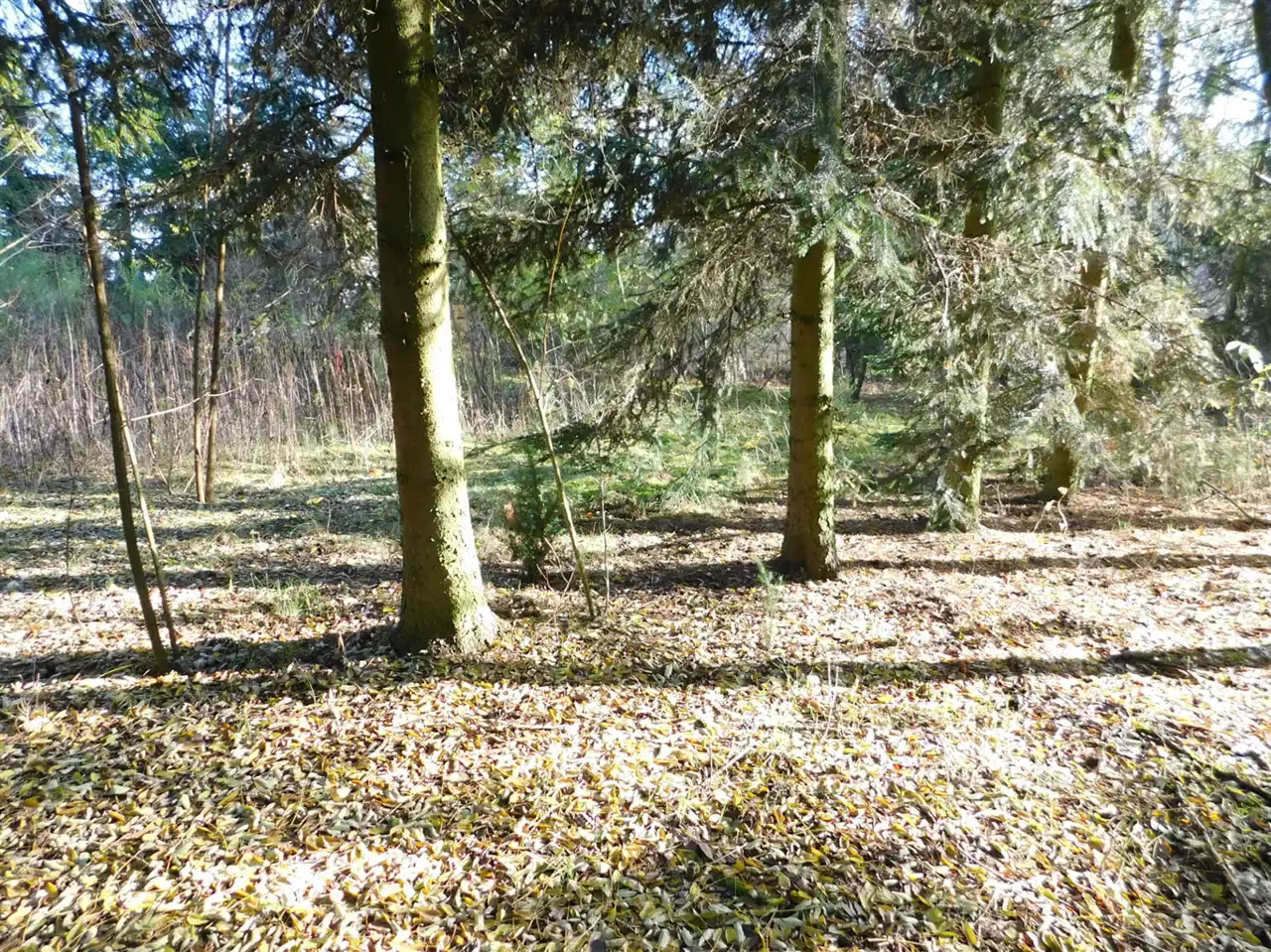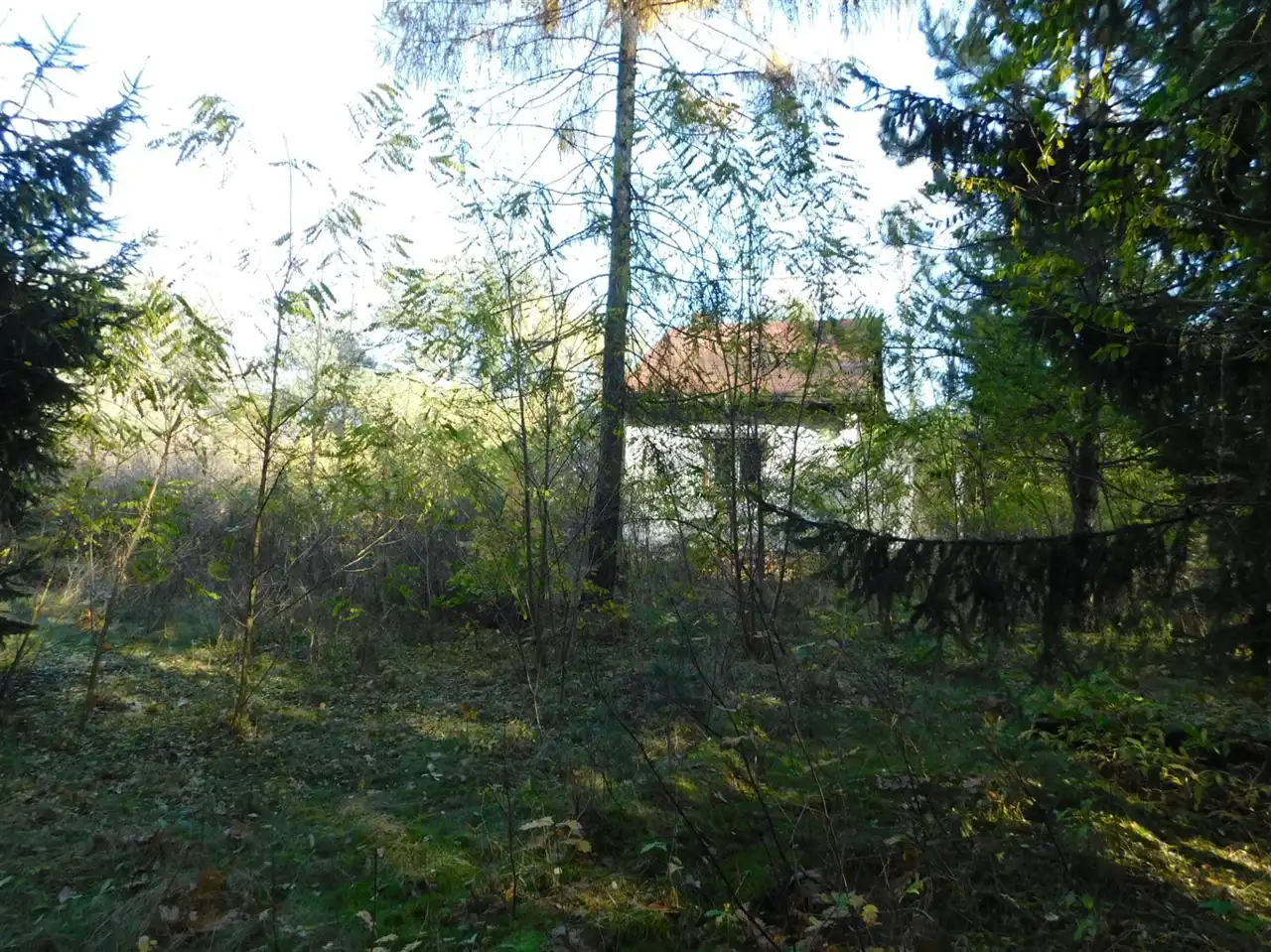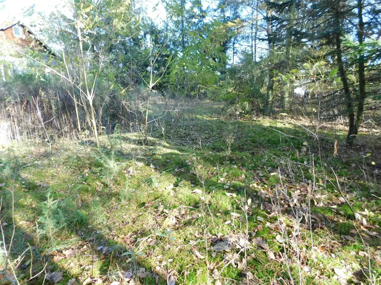 Działka ogrodzona, częściowo zalesiona, z mchem i starodrzewem. Podzielona na cztery działki, po ok. 1000m2 każda. Wszystkie są działkami budowlanymi. Szerokość frontu całości ponad 114m. Na działce posadowiony jest domek letniskowy w stanie do remontu lub do rozbiórki. Media: prąd, woda bezpośrednio na działce. Kanalizacja gminna i gaz w przygotowanych planach.