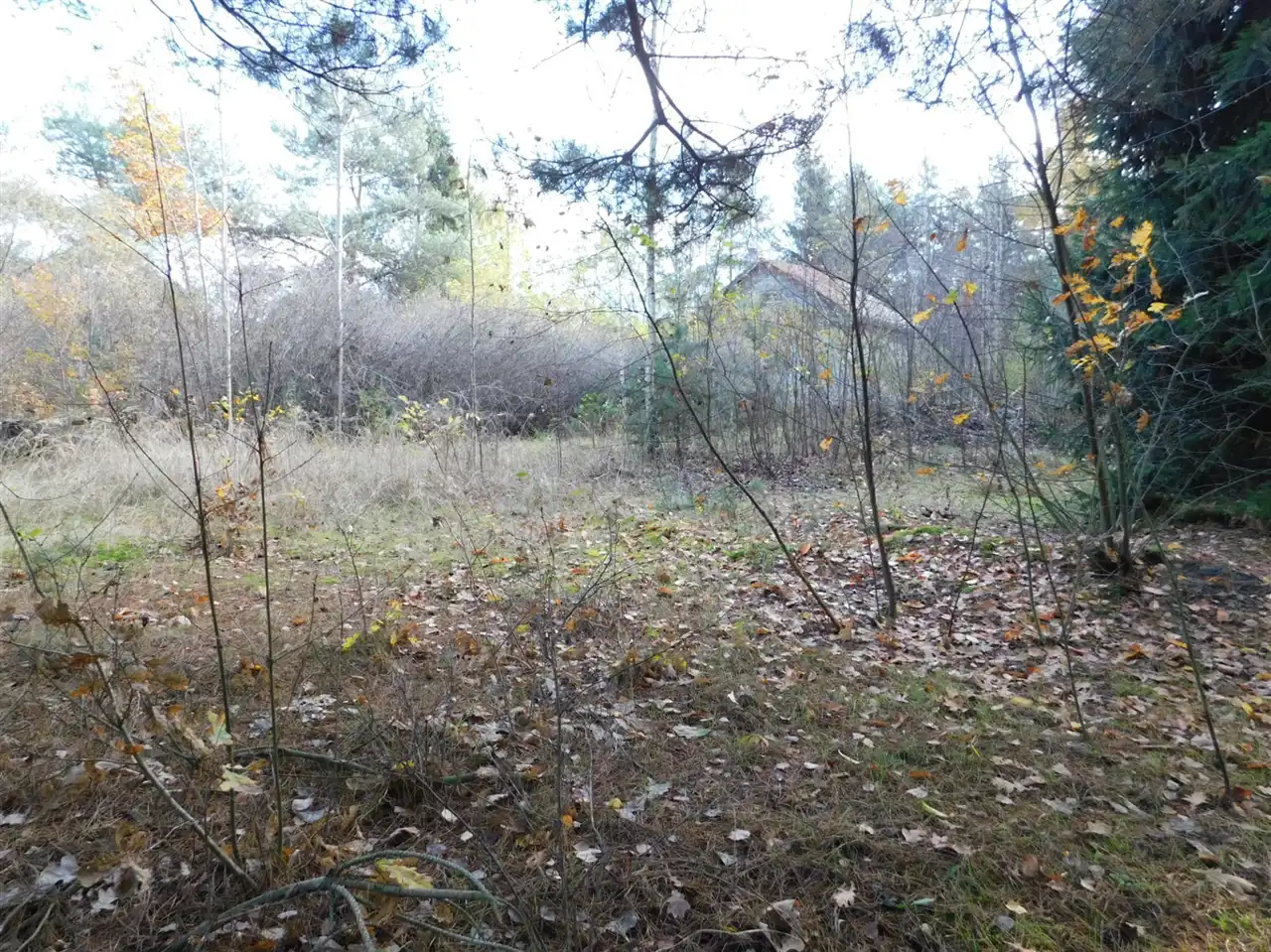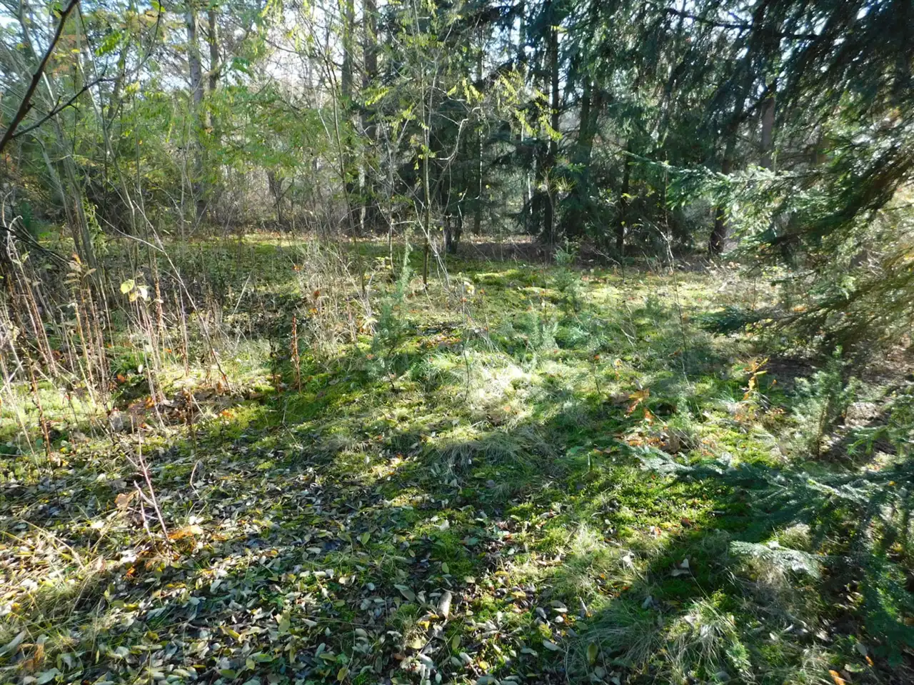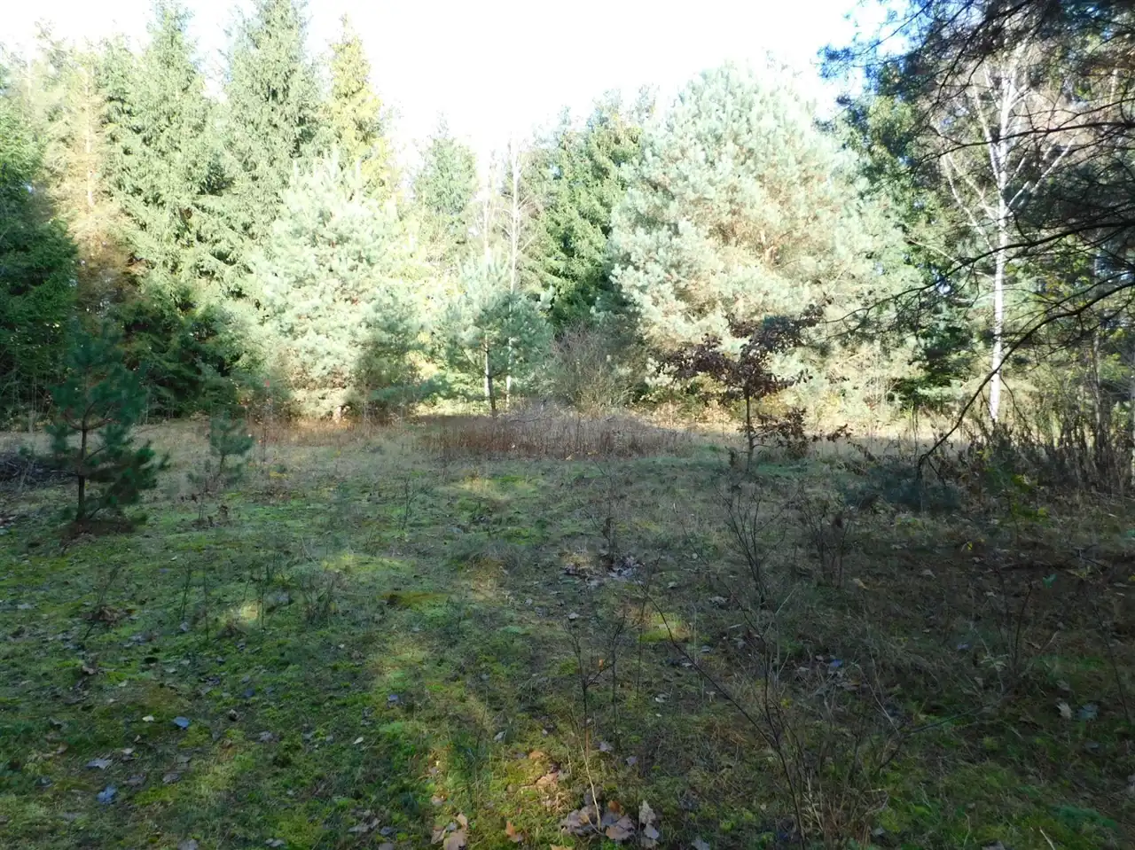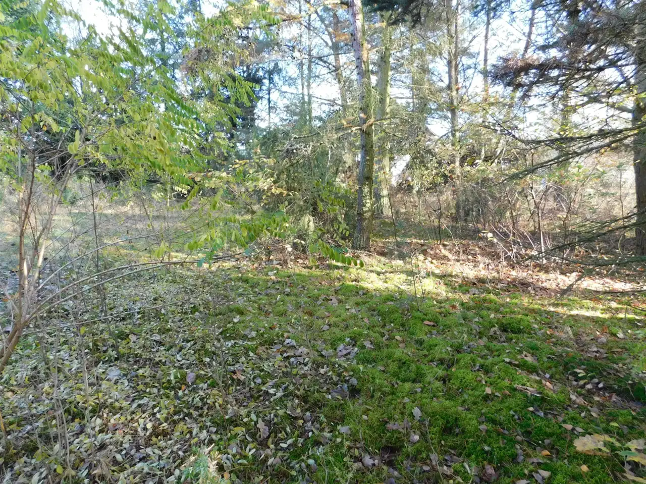 Działka ogrodzona, częściowo zalesiona, z mchem i starodrzewem. Podzielona na cztery działki, po ok. 1000m2 każda. Wszystkie są działkami budowlanymi. Szerokość frontu całości ponad 114m. Na działce posadowiony jest domek letniskowy w stanie do remontu lub do rozbiórki. Media: prąd, woda bezpośrednio na działce. Kanalizacja gminna i gaz w przygotowanych planach.