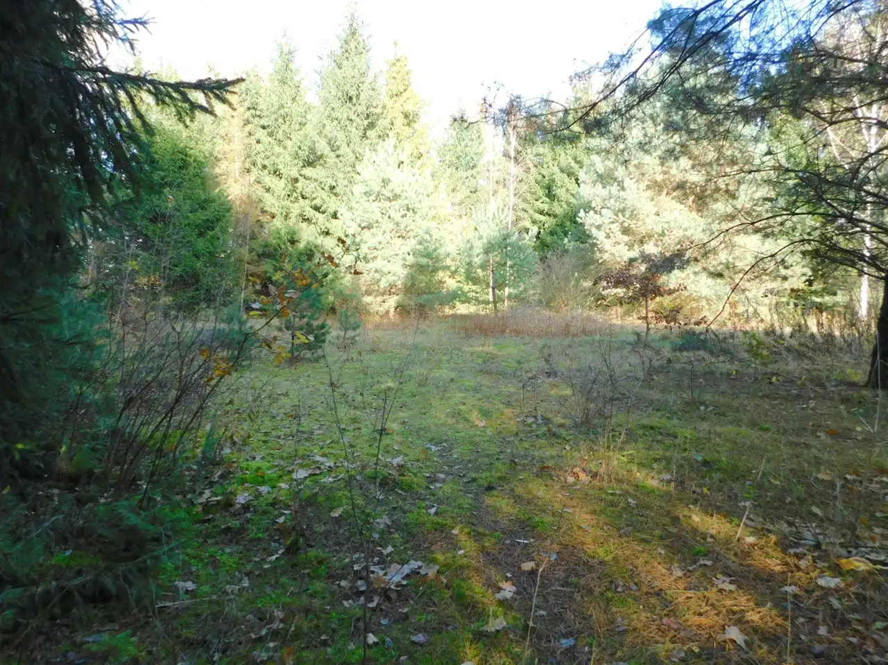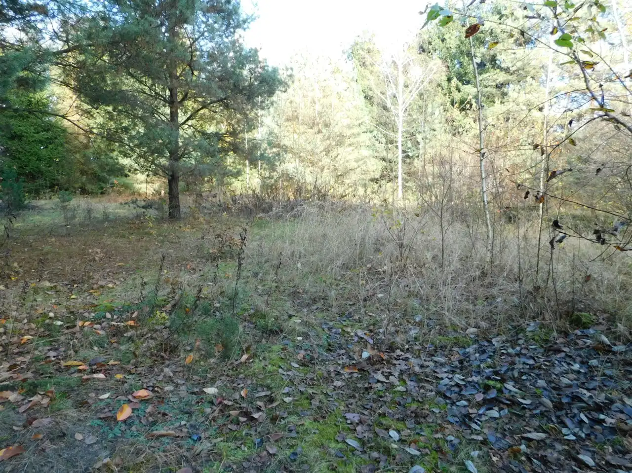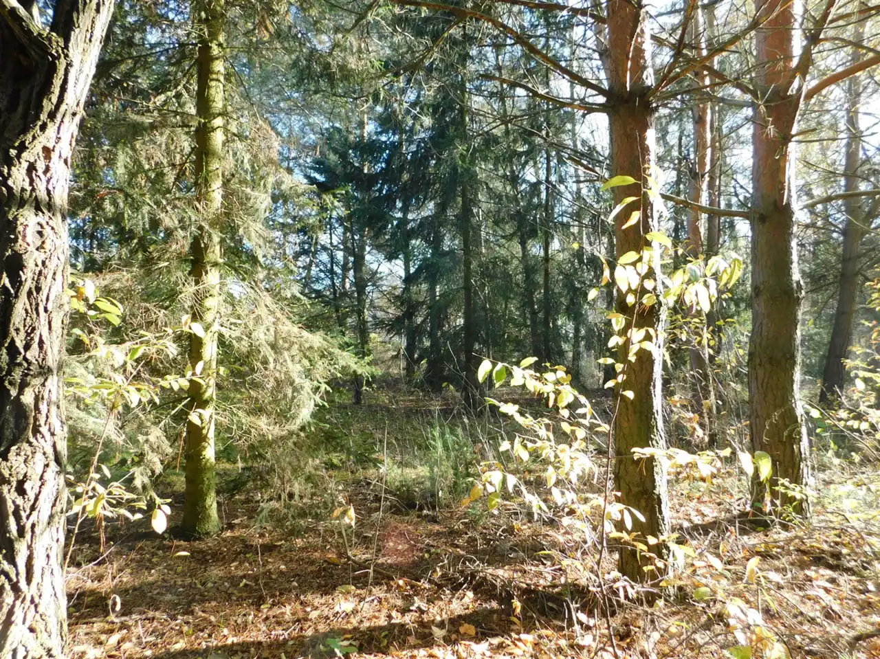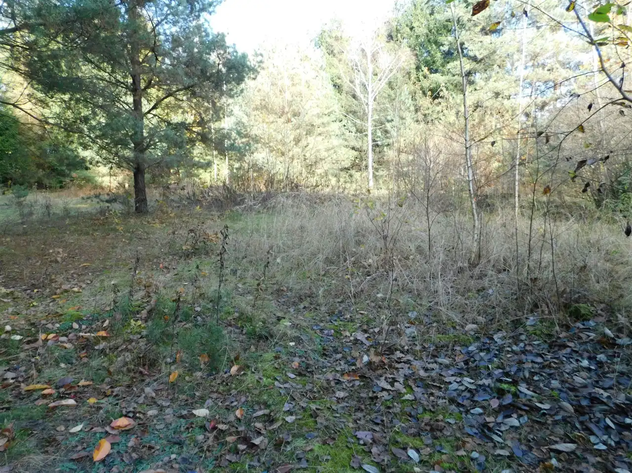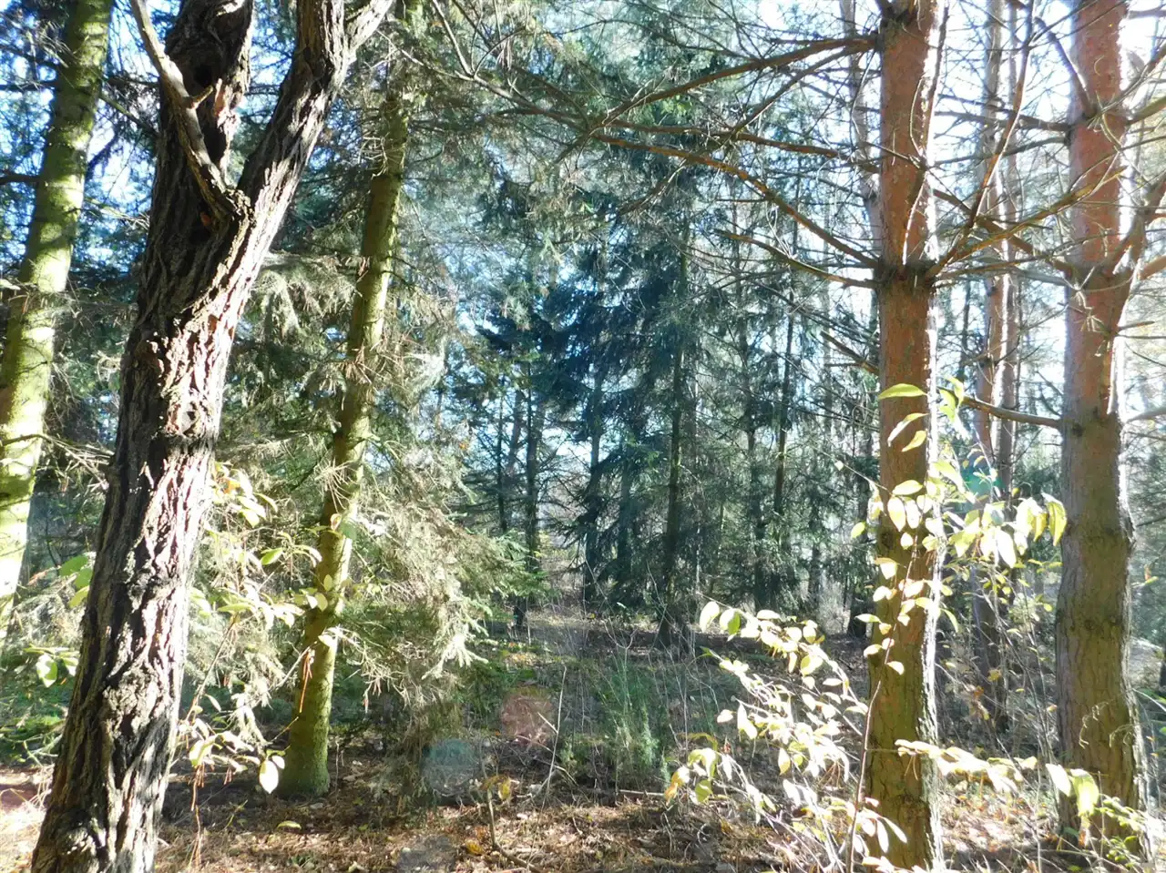 Działka ogrodzona, częściowo zalesiona, z mchem i starodrzewem. Podzielona na cztery działki, po ok. 1000m2 każda. Wszystkie są działkami budowlanymi. Szerokość frontu całości ponad 114m. Na działce posadowiony jest domek letniskowy w stanie do remontu lub do rozbiórki. Media: prąd, woda bezpośrednio na działce. Kanalizacja gminna i gaz w przygotowanych planach.