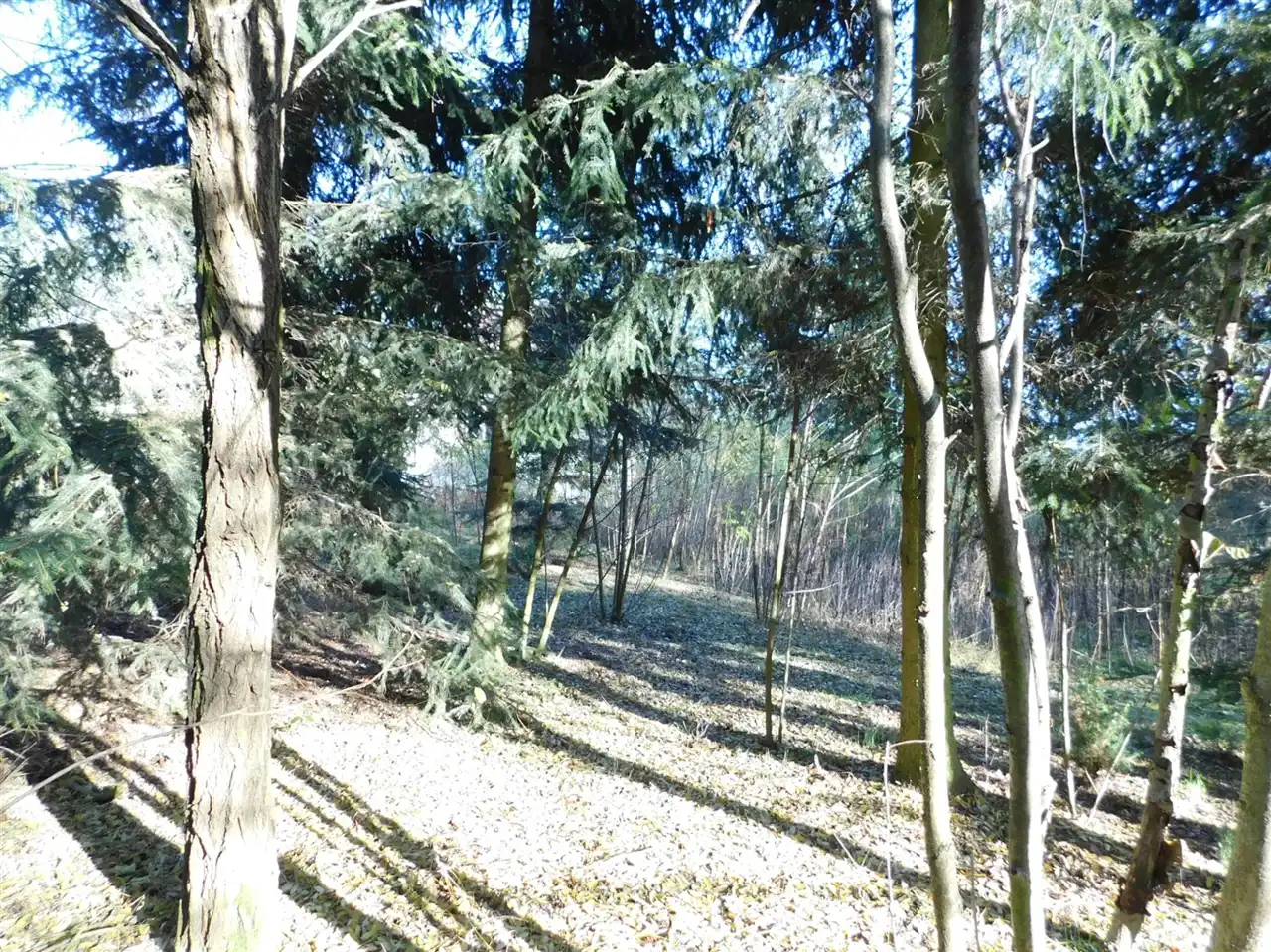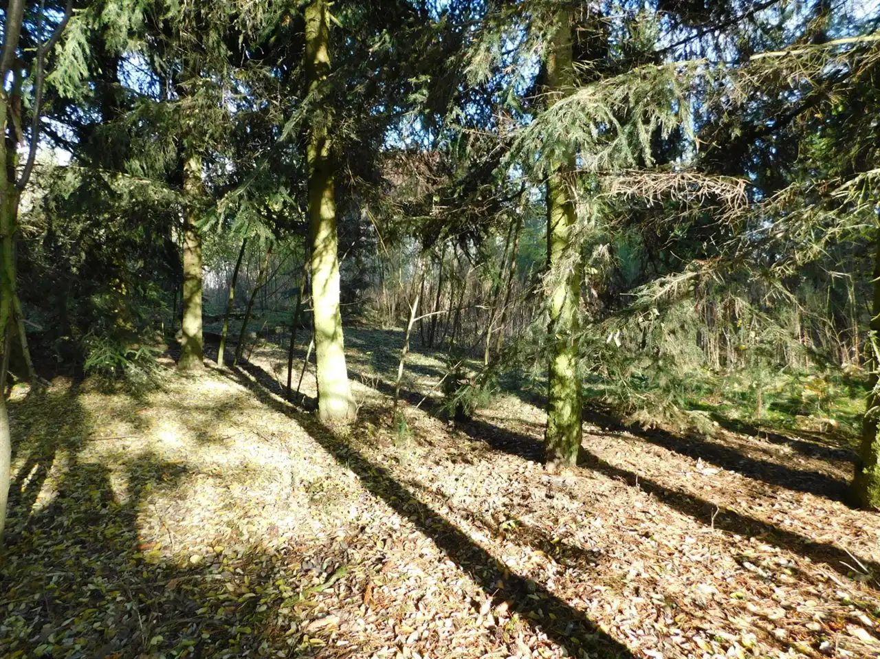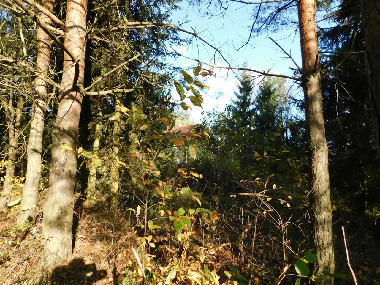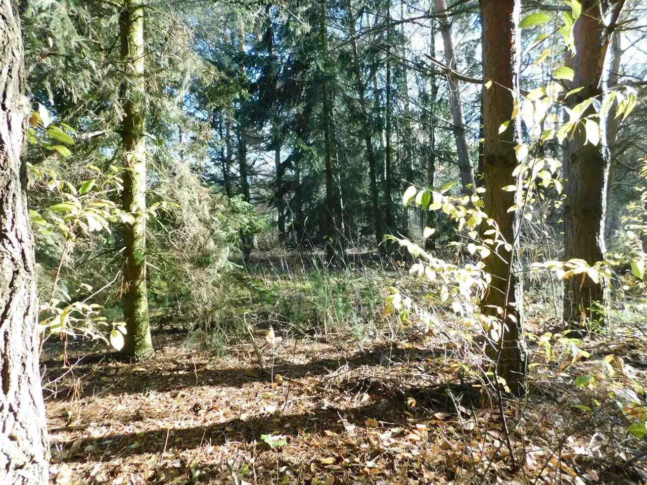 Działka ogrodzona, częściowo zalesiona, z mchem i starodrzewem. Podzielona na cztery działki, po ok. 1000m2 każda. Wszystkie są działkami budowlanymi. Szerokość frontu całości ponad 114m. Na działce posadowiony jest domek letniskowy w stanie do remontu lub do rozbiórki. Media: prąd, woda bezpośrednio na działce. Kanalizacja gminna i gaz w przygotowanych planach.