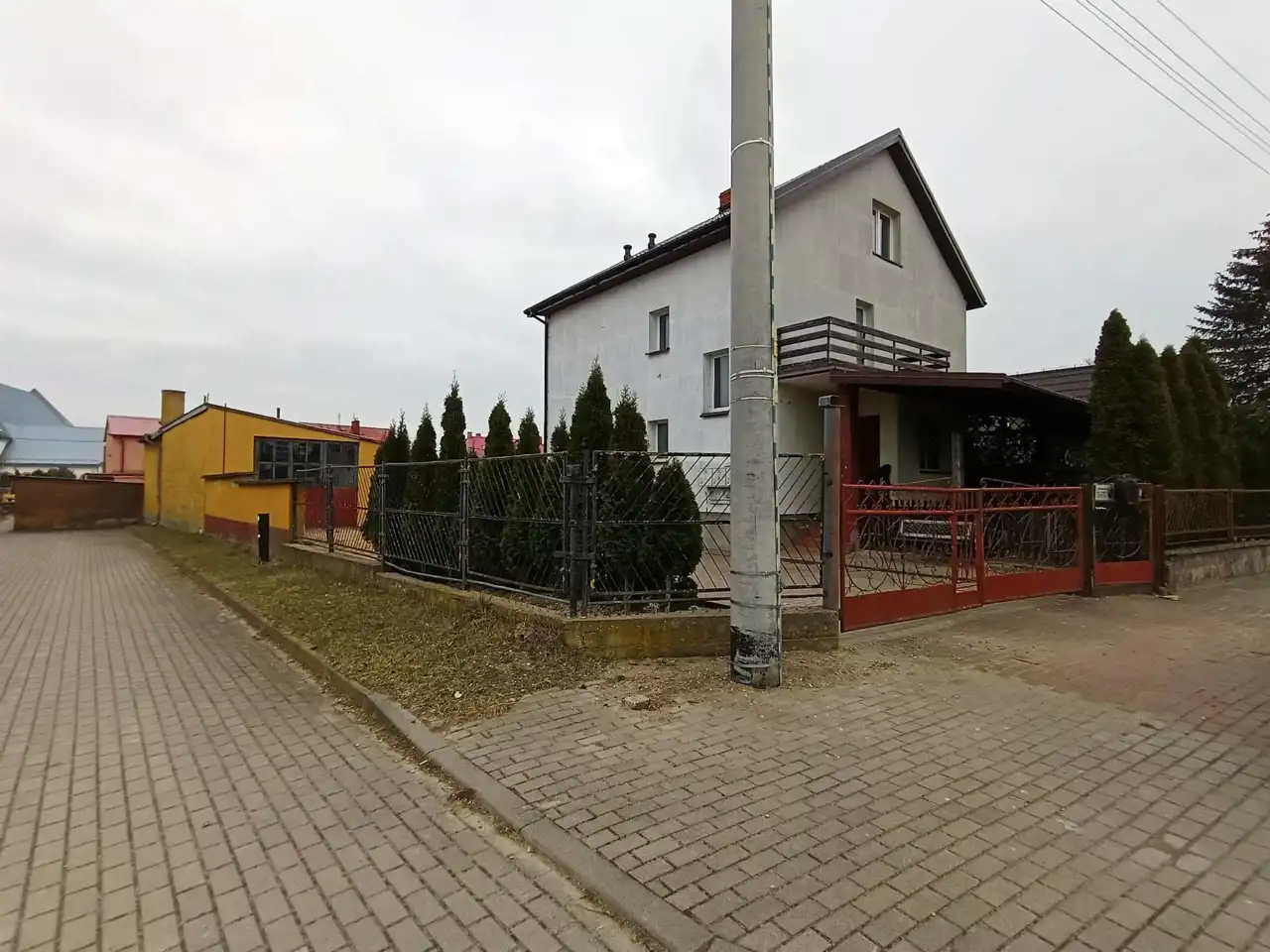 Działka ogrodzona, wjazd na działkę wyłożony kostką brukową.