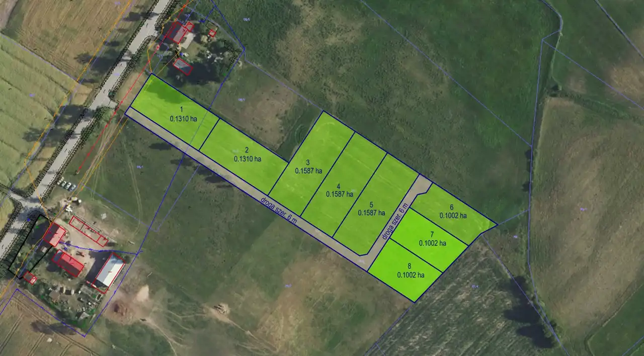 Powierzchnie działek: od 1002 m² do 1587 m²