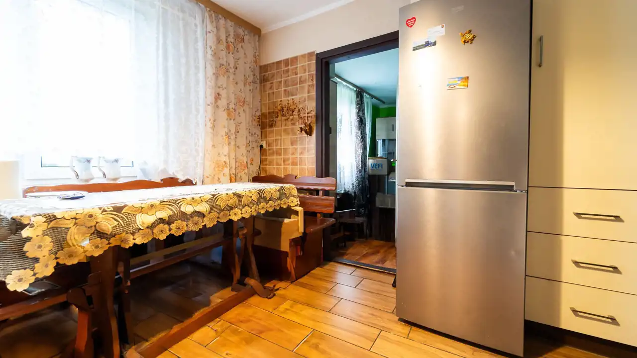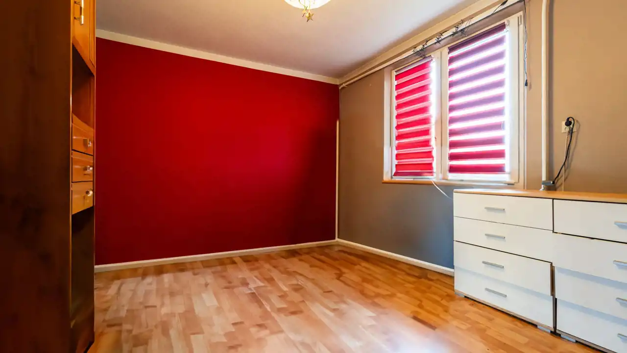 - Ściany: otynkowane i pomalowane farbą emulsyjną (pokoje), pokryte panelami ściennymi (przedpokój), otynkowane i pokryte powłoką malarską oraz płytkami (kuchnia).