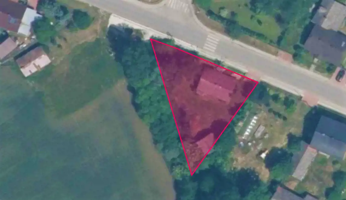 - Działka częściowo zagospodarowana, płaska, trójkąt