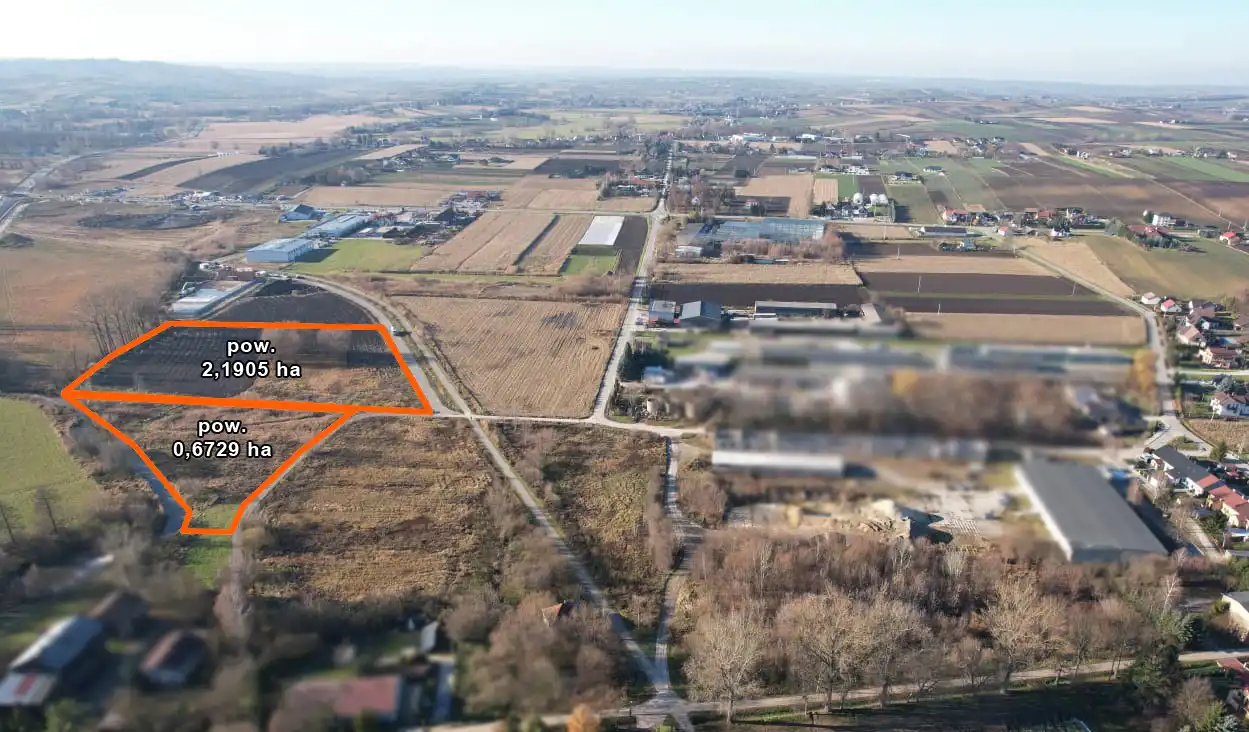Do sprzedania działka przemysłowo-usługowa o łącznej pow. 2,1905 ha zlokalizowana w miejscowości Klimontów gm. Proszowice. Działka płaska, w kształcie zbliżonym do prostokąta o wymiarach ok.: 143m/ 147m. Nieruchomość położona w I linii zabudowy od drogi gminnej asfaltowej. Działka oznaczona w studium zagospodarowania jako "PU" - obszar rozwoju wielofunkcyjnych usług, przemysłu, składowania. Dla nieruchomości zostały wydane aktualne warunki zabudowy - " Hala wielofunkcyjna wraz z infrastrukturą techniczną, zbiornikiem fekalnym, utwardzeniem terenu, zjazdem z drogi, przyłączami eNN, kanalizacji, wodociągowym, kanalizacja opadowa."Media: prąd na działce, kanalizacja przy działce, woda do podciągnięcia.