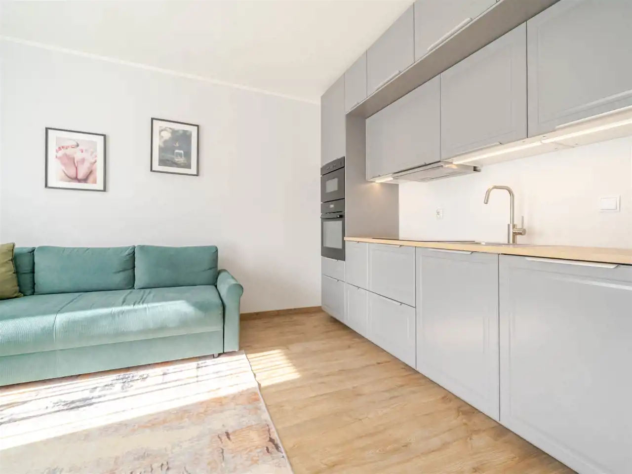 Mieszkanie wykończone materiałami wysokiej jakości – kuchnia i zabudowy meblowe wykonane na wymiar. Południowa ekspozycja i jasne wnętrza sprawiają, że lokal jest pełen światła i wyjątkowo przytulny.
