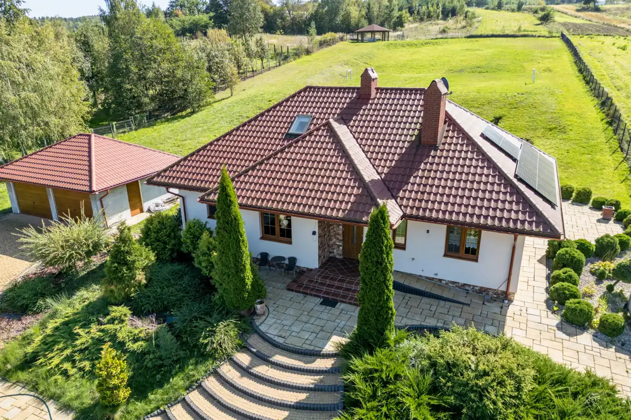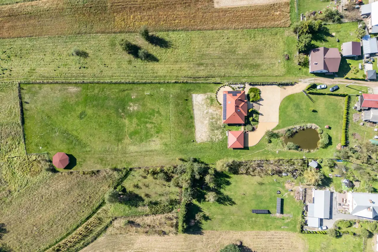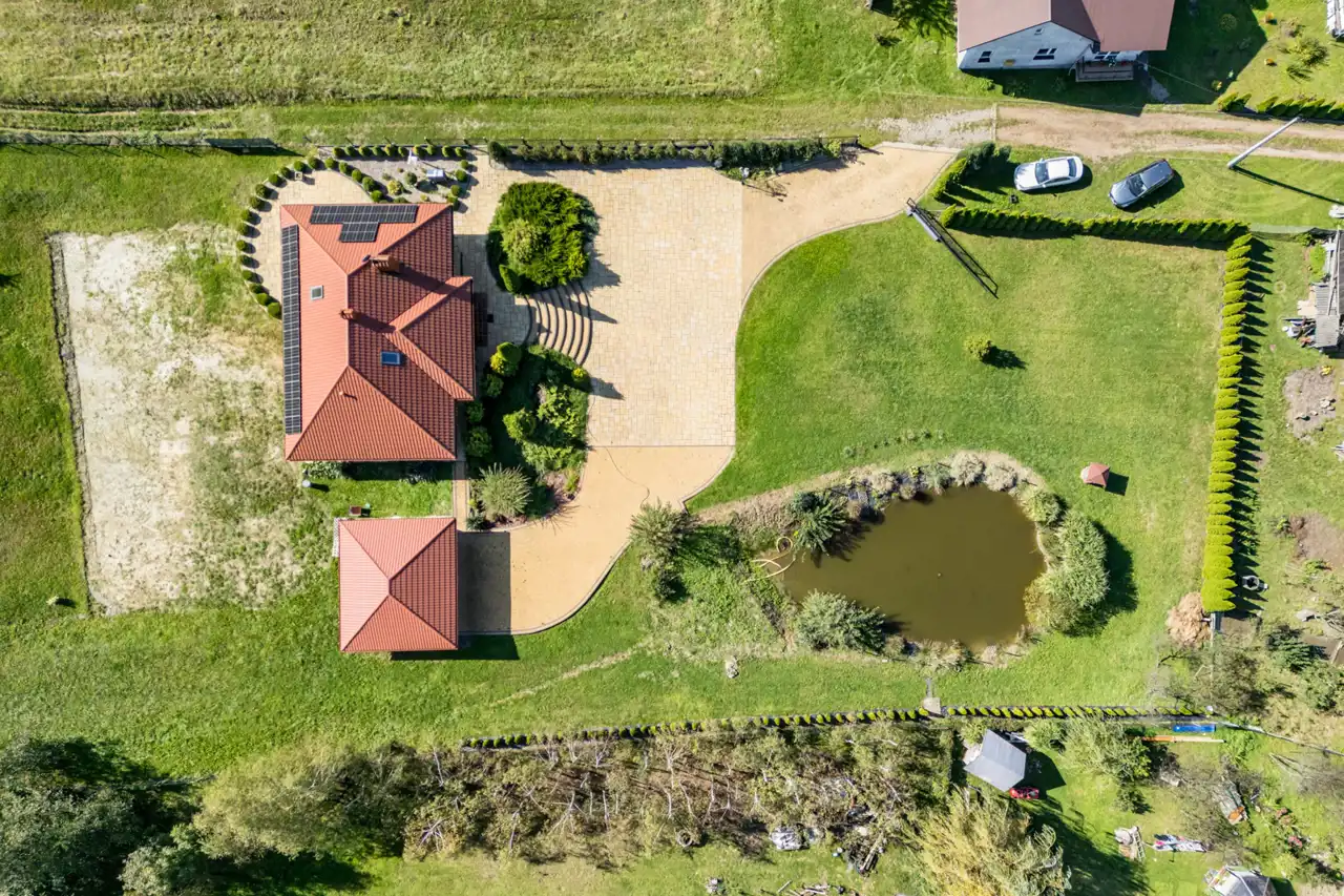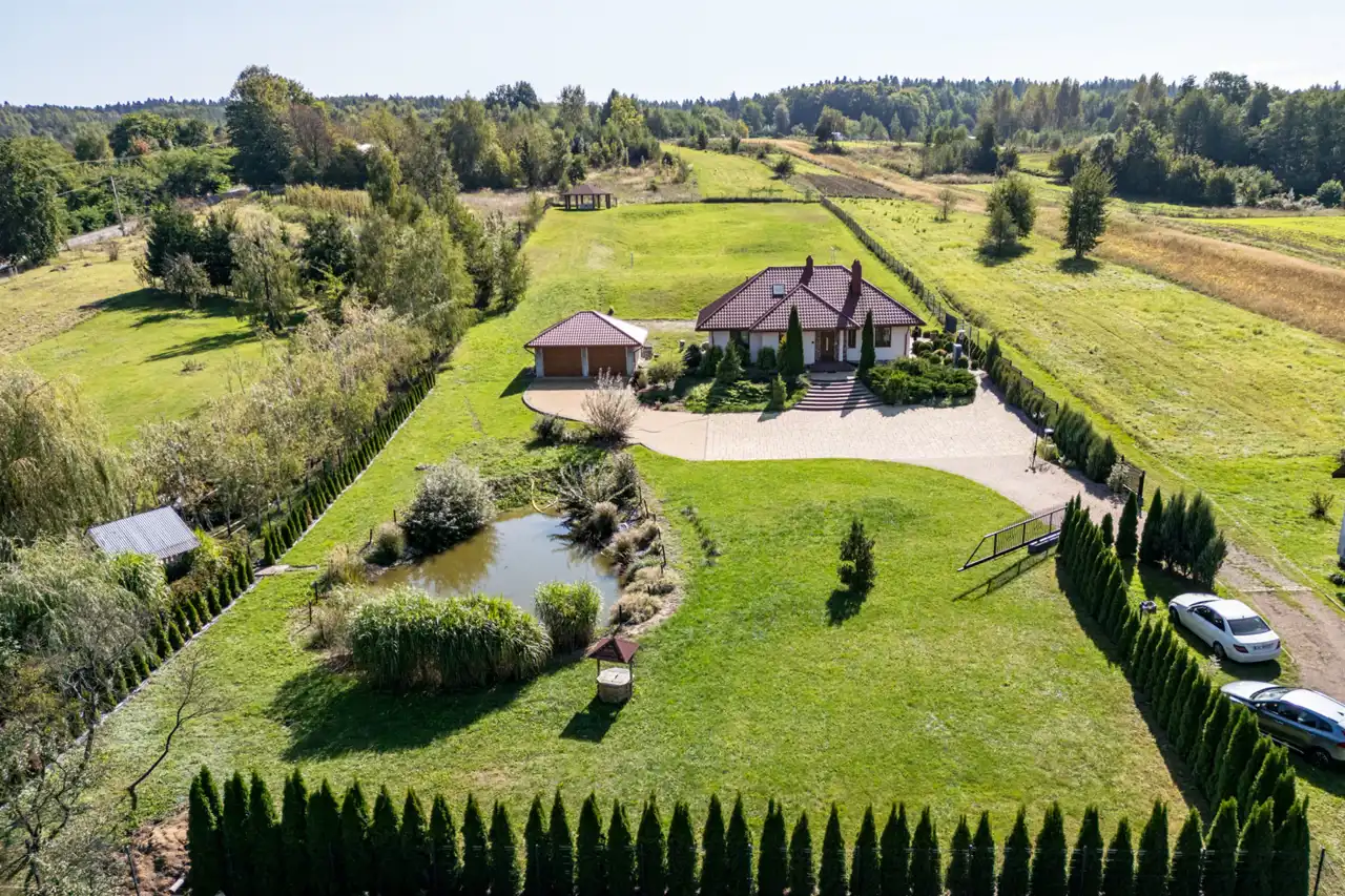Na dużej, zielonej działce znajduje się zarybiony staw, który stanowi idealne miejsce do odpoczynku na łonie natury. Dla miłośników relaksu na świeżym powietrzu, na końcu działki znajduje się altana, która świetnie sprawdzi się podczas spotkań towarzyskich lub rodzinnych pikników. Działka jest przestronna i zapewnia mnóstwo możliwości do jej zagospodarowania według własnych upodobań – zarówno na cele rekreacyjne, jak i użytkowe.