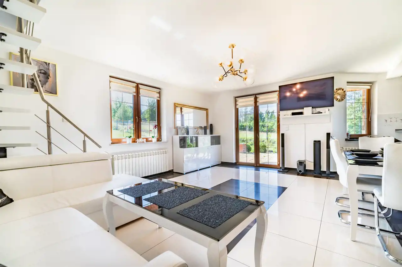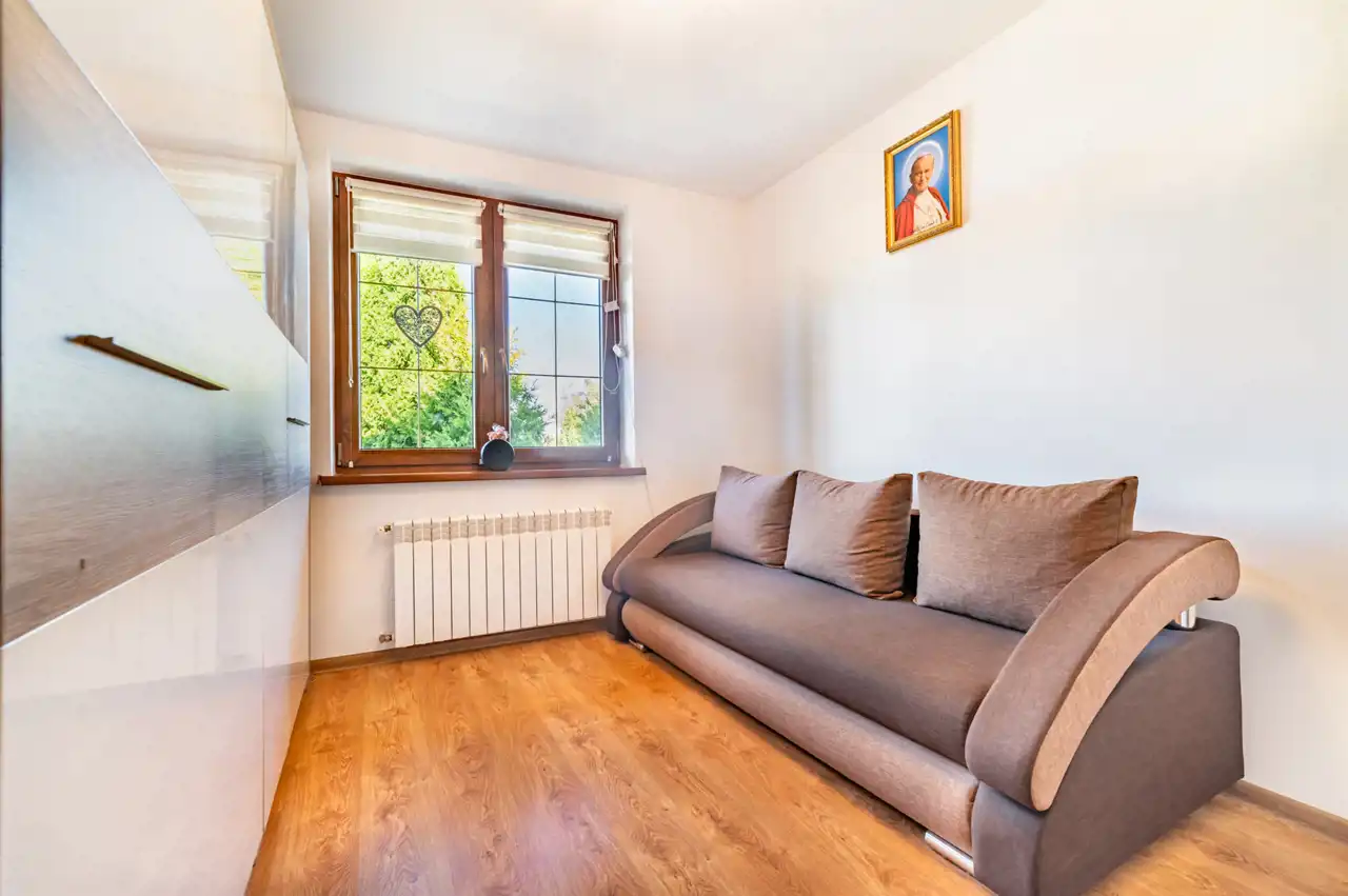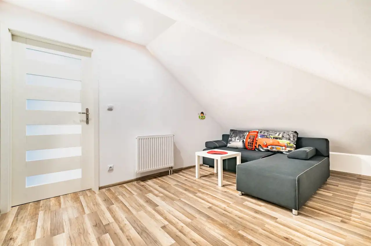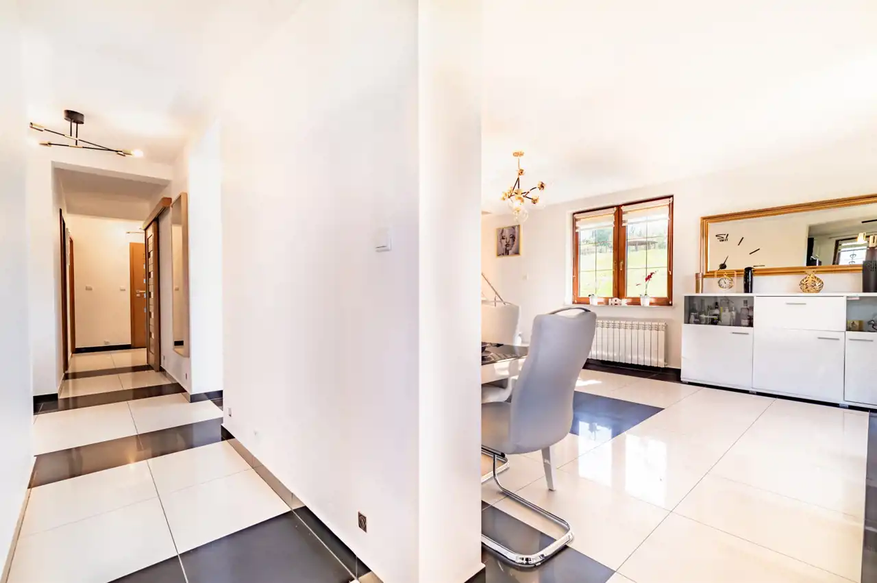 Dom położony jest w cichej i spokojnej okolicy, co gwarantuje odpoczynek z dala od miejskiego zgiełku. Jednocześnie lokalizacja zapewnia łatwy dostęp do najważniejszych punktów usługowych oraz dobrych połączeń komunikacyjnych.