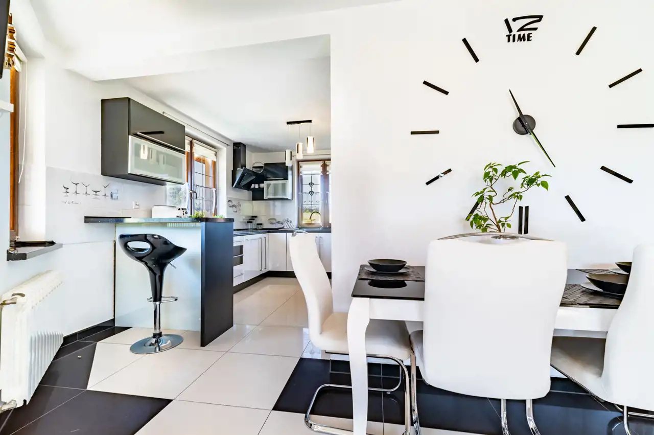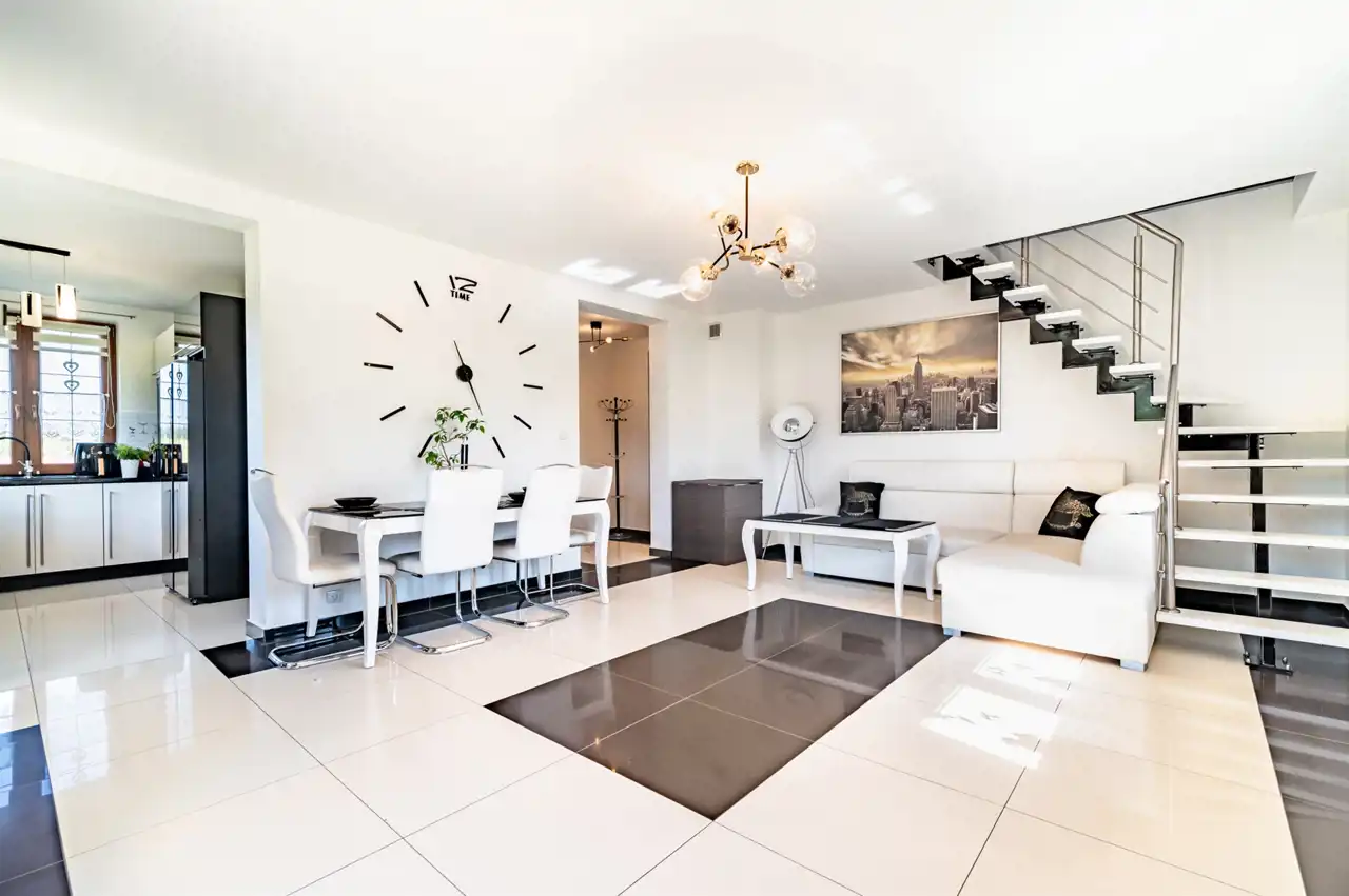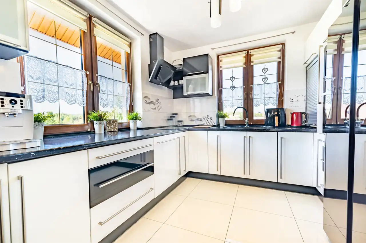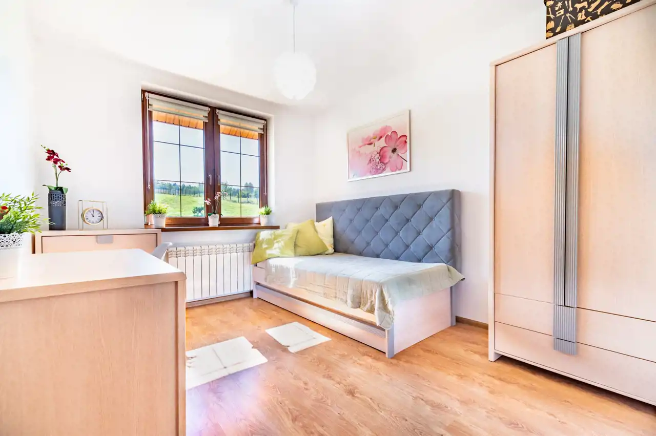 Dom położony jest w cichej i spokojnej okolicy, co gwarantuje odpoczynek z dala od miejskiego zgiełku. Jednocześnie lokalizacja zapewnia łatwy dostęp do najważniejszych punktów usługowych oraz dobrych połączeń komunikacyjnych.
