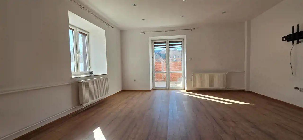 Piętro:duży salon, dwie sypialnie z wyjściem na balkon, garderoba, toaleta.