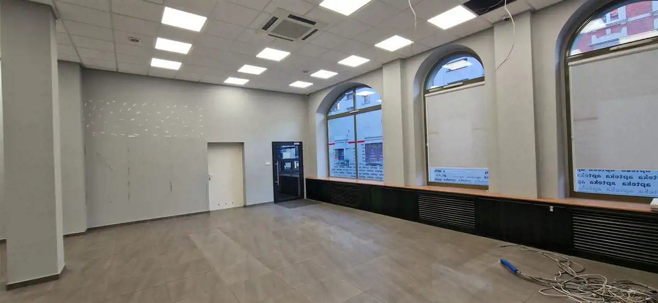 Na sprzedaż Lokal handlowo-usługowy o powierzchni użytkowej 131,030 m2 zlokalizowany na ulicy Piastowskiej w Prudniku. W skład lokalu wchodzi: duża sala sprzedaży około 74 m2 z dużą widoczna witryną, biuro, łazienka z wc, pomieszczenia socjalne, ogrzewanie c.o. miejskie, wentylacja, na podłogach płytki ceramiczne i gres, alarm.