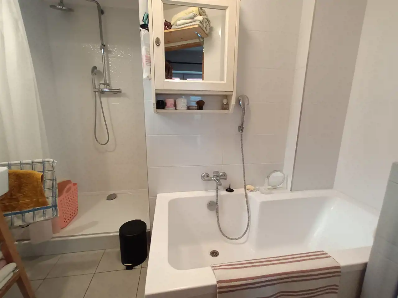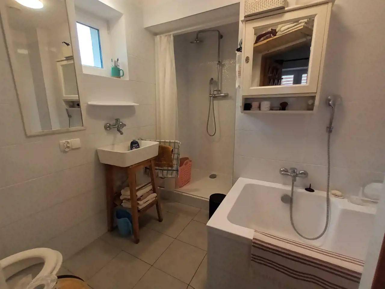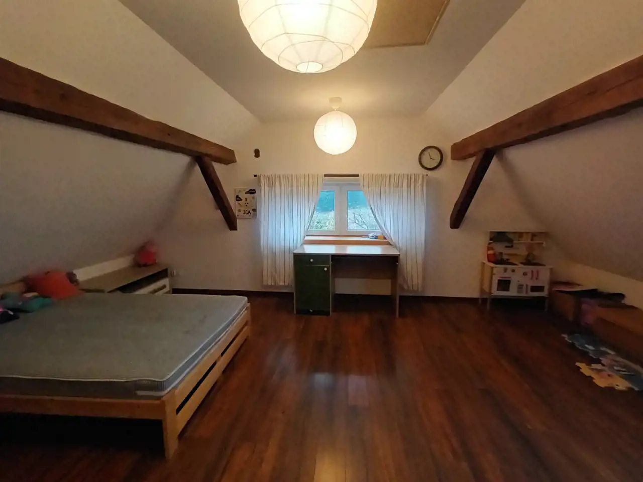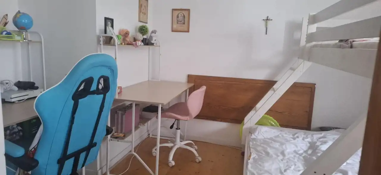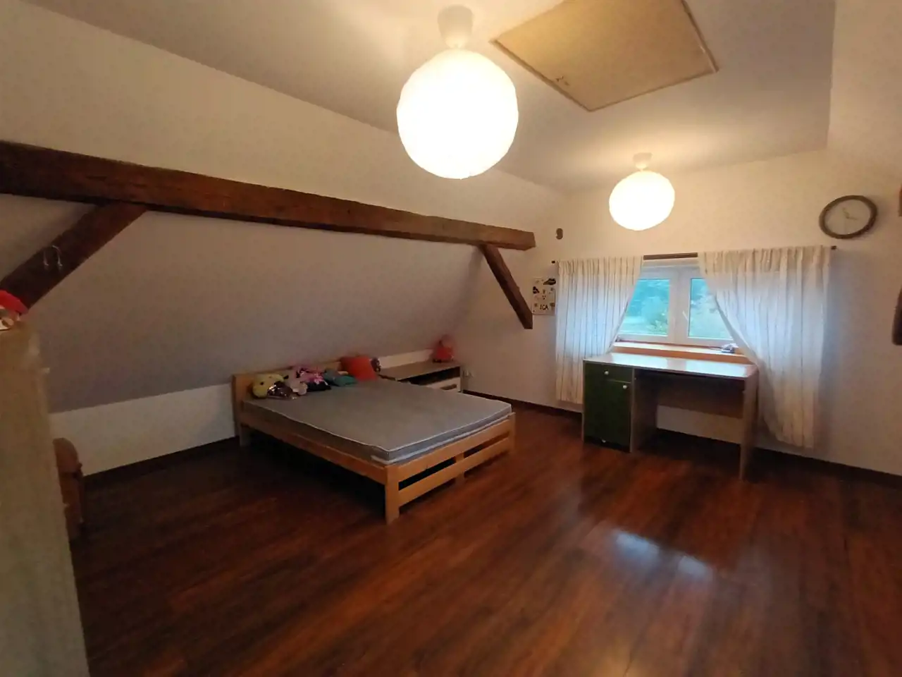 Sprzedam dwupoziomowe mieszkanie o pow. ok 80 m.kw. z dużą działką o pow. 1100 m.kw., które stanowi połowę domu. Usytuowane jest ono na na piętrze i poddaszu, posiada oddzielne wejście, dwa tarasy. Pierwszy poziom o pow. 49 m.kw składa się z dużego salonu z aneksem kuchennym i jadalnią, jednej sypialni, łazienki i korytarza. Na drugim poziomie o tej samej powierzchni po podłodze (ok. 30 m.kw pow. użytkowej) znajdują się dwie sypialnie i korytarz. Mieszkanie na księdze wieczystej ma powierzchnię 51,5 m.kw.