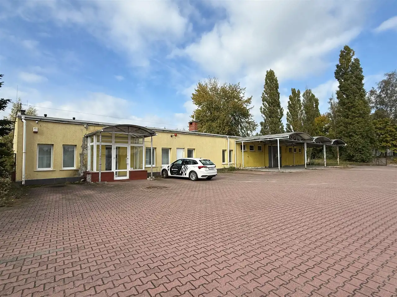 miejsca postojowe przed budynkiem oraz możliwość wynajęcia placu utwardzonego przed budynkiem.