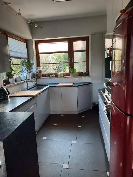 . kuchnia widna otwarta z przylegającą do niej spiżarnią