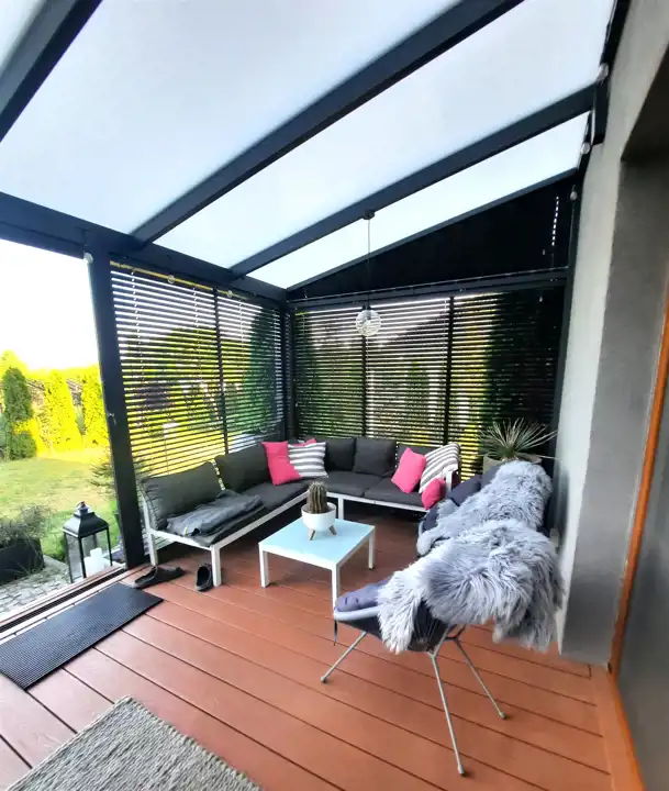 . duża zadaszona loggia ,na którą są wyjścia z obu pokoi