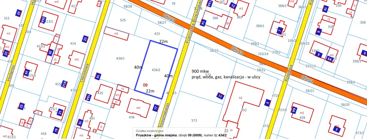 - Media Woda: w ulicy; Kanalizacja: w ulicy; Prąd: w ulicy; Gaz: w ulicy