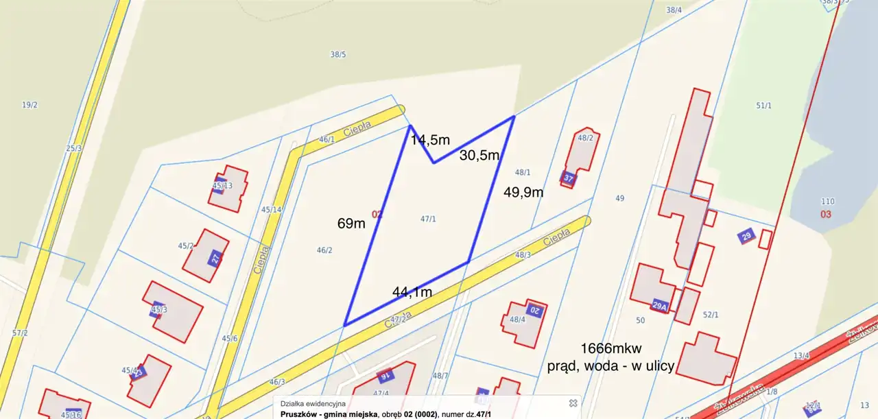 - Media Woda: w ulicy; Kanalizacja: brak; Prąd: w ulicy; Gaz: brak