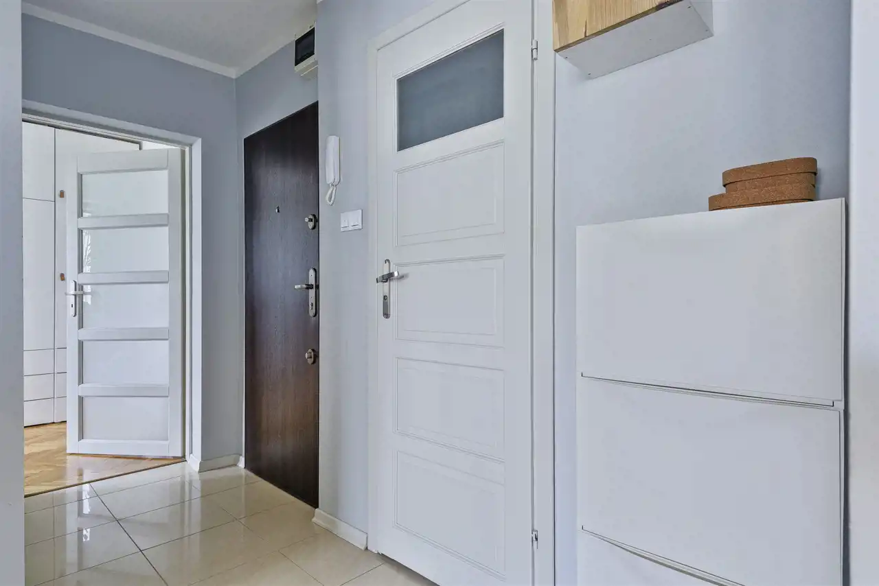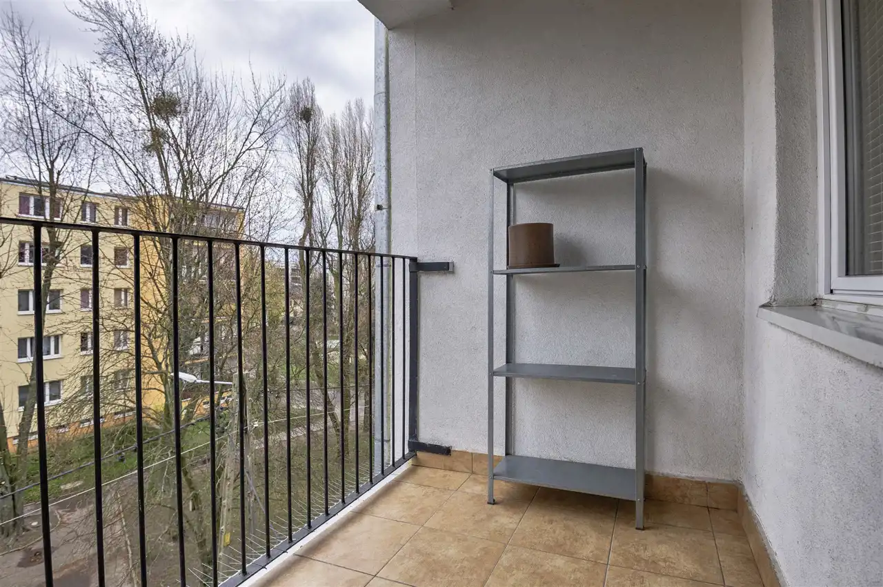 Jest w bardzo dobrym stanie. Było remontowane przez właścicieli dla siebie, więc wykonanie jest naprawdę dobre. Korytarz ma zaledwie 3,5 m2, więc nie zajmuje niepotrzebnie wiele miejsca, a jednocześnie idealnie oddziela wszystkie pomieszczenia. Salon (ok. 16,5 m2) połączony z kuchnią (5,3 m2) są naprawdę bardzo ustawne i wygodne. Dzięki otwartej przestrzeni ma się wrażenie, że jest dużo więcej metrów kwadratowych. Balkon (2,8 m2) i okna są na stronę południowo wschodnią, więc wpada dużo naturalnego światła, ale słońce nie będzie bardzo uprzykrzające przy upalnych dniach. Co ważne mieszkanie skierowane jest na ciche podwórko, dzięki czemu nie słychać hałasów z zewnątrz i widok jest bardzo ładny. Sypialnie (9 i 6 m2) są rewelacyjnie zagospodarowane - mieści się w nich wszystko, co jest konieczne. Kwadratowa łazienka (2,7 m2) też ma wszystko dobrze poukładane. Całe mieszkanie jest bardzo kompaktowe i wygodne. Naprawdę nie gubi się tutaj przestrzeni na niepotrzebne korytarze. Instalacja elektryczna w mieszkaniu została wymieniona. Do mieszkania przynależy piwnica - 1,7 metra kwadratowego.