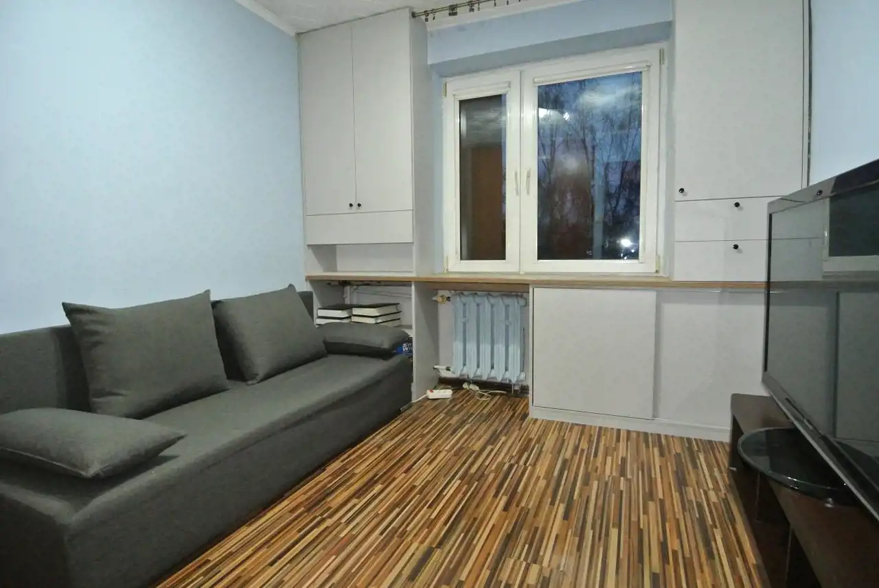 Lokal usytuowany jest na trzecim piętrze w ośmiopiętrowym bloku, wzniesionym w 1985 roku. Pomieszczenia: salon z wyjściem na balkon, 2 pokoje, kuchnia, łazienka, WC, przedpokój.