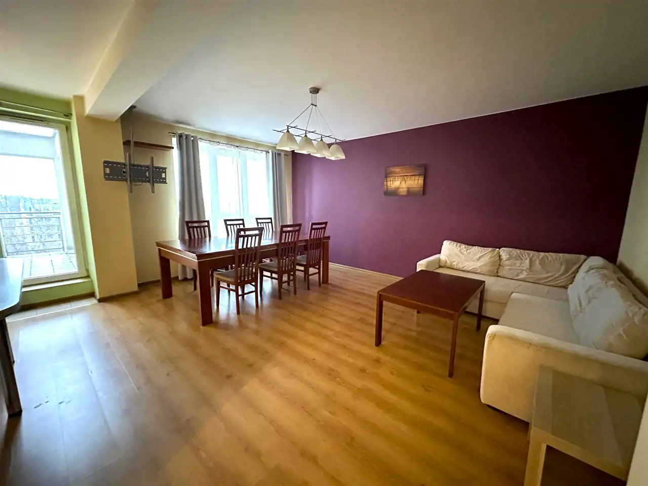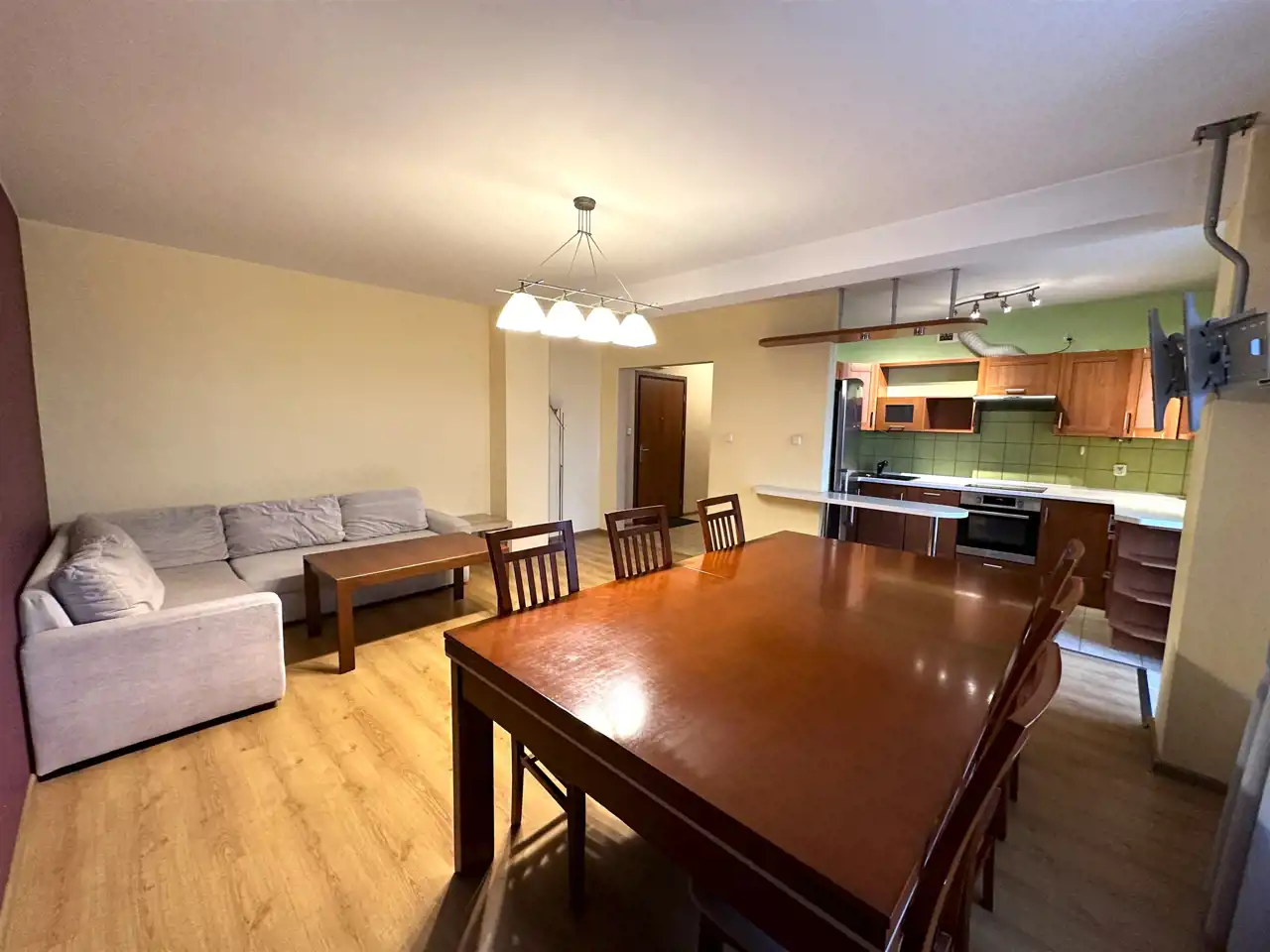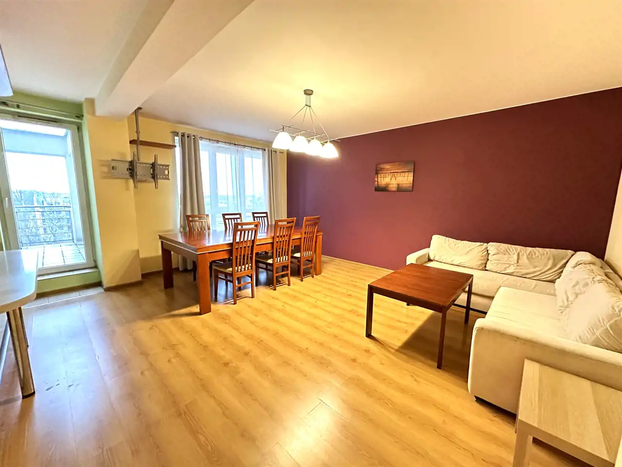 - dużego salonu połączonego z kuchnią i wyjściem na sporej wielkości balkon