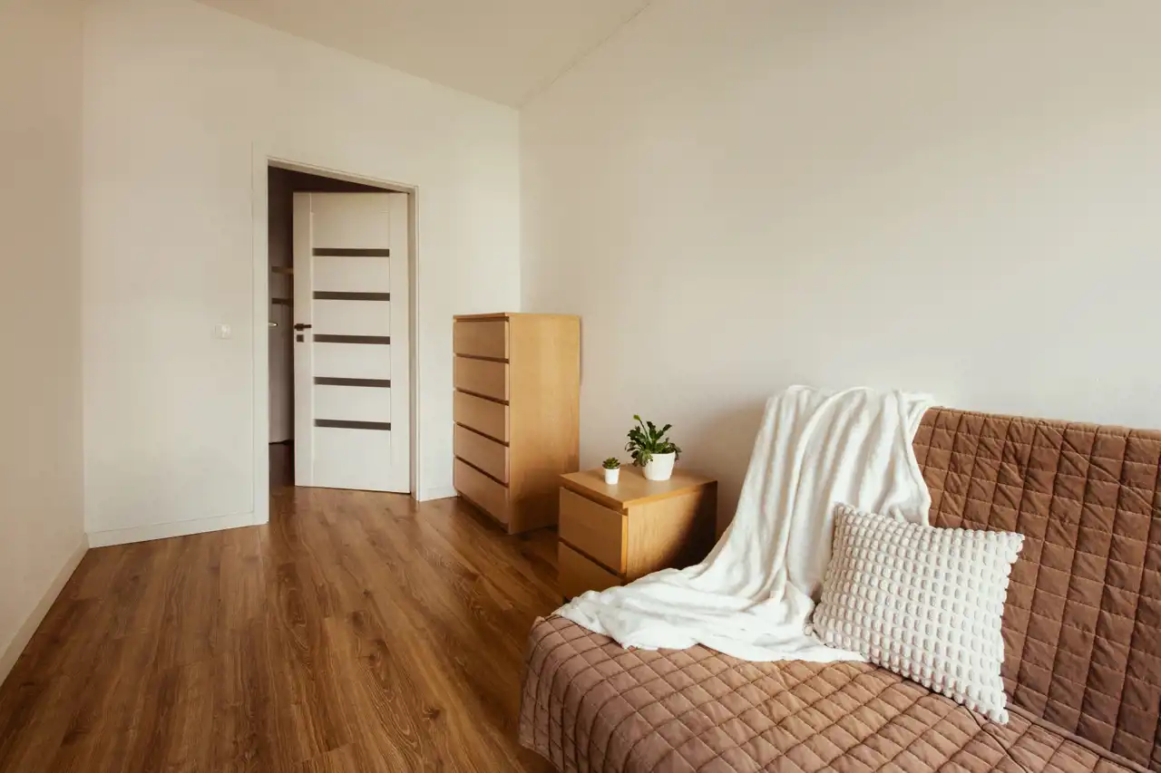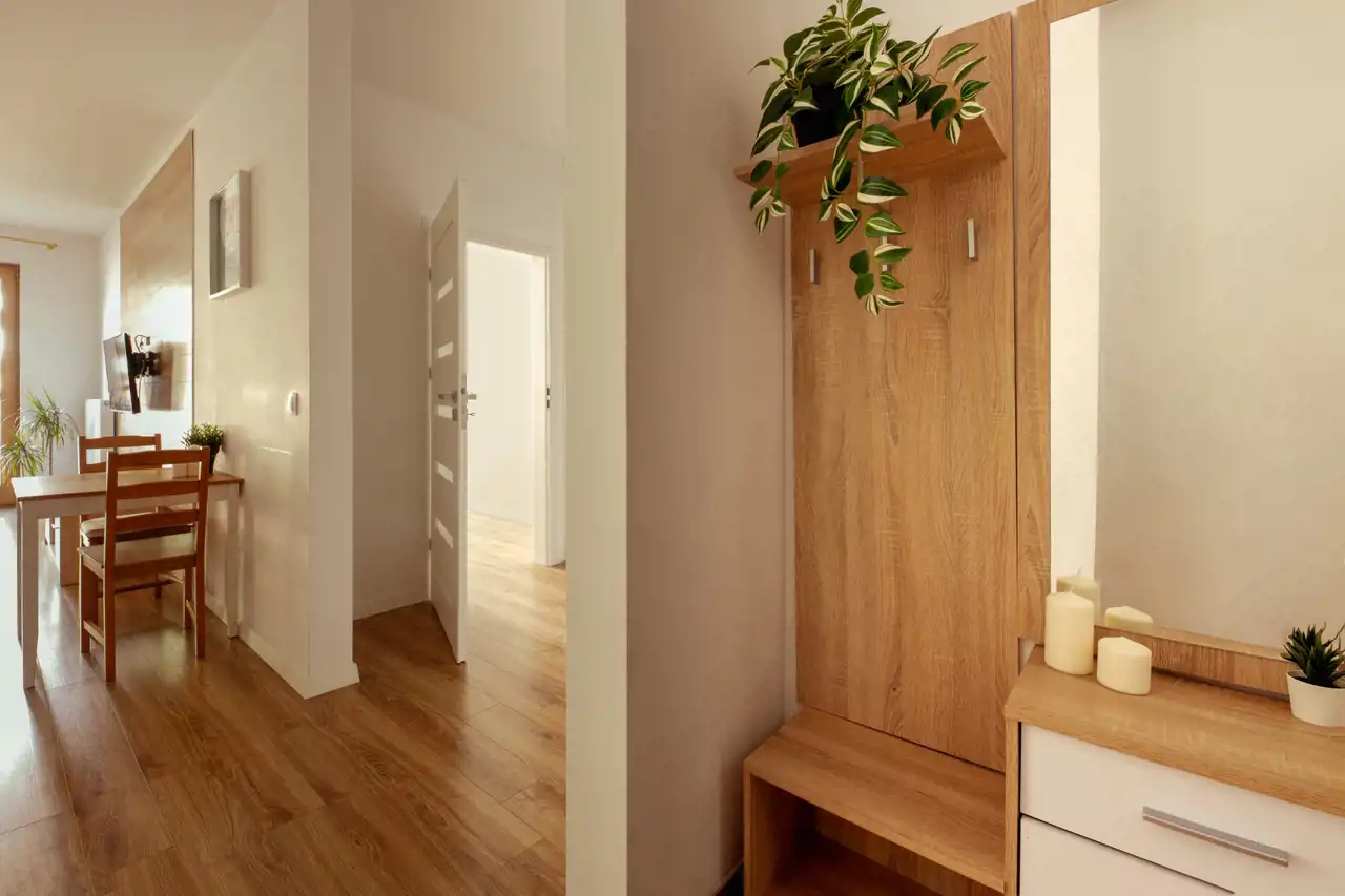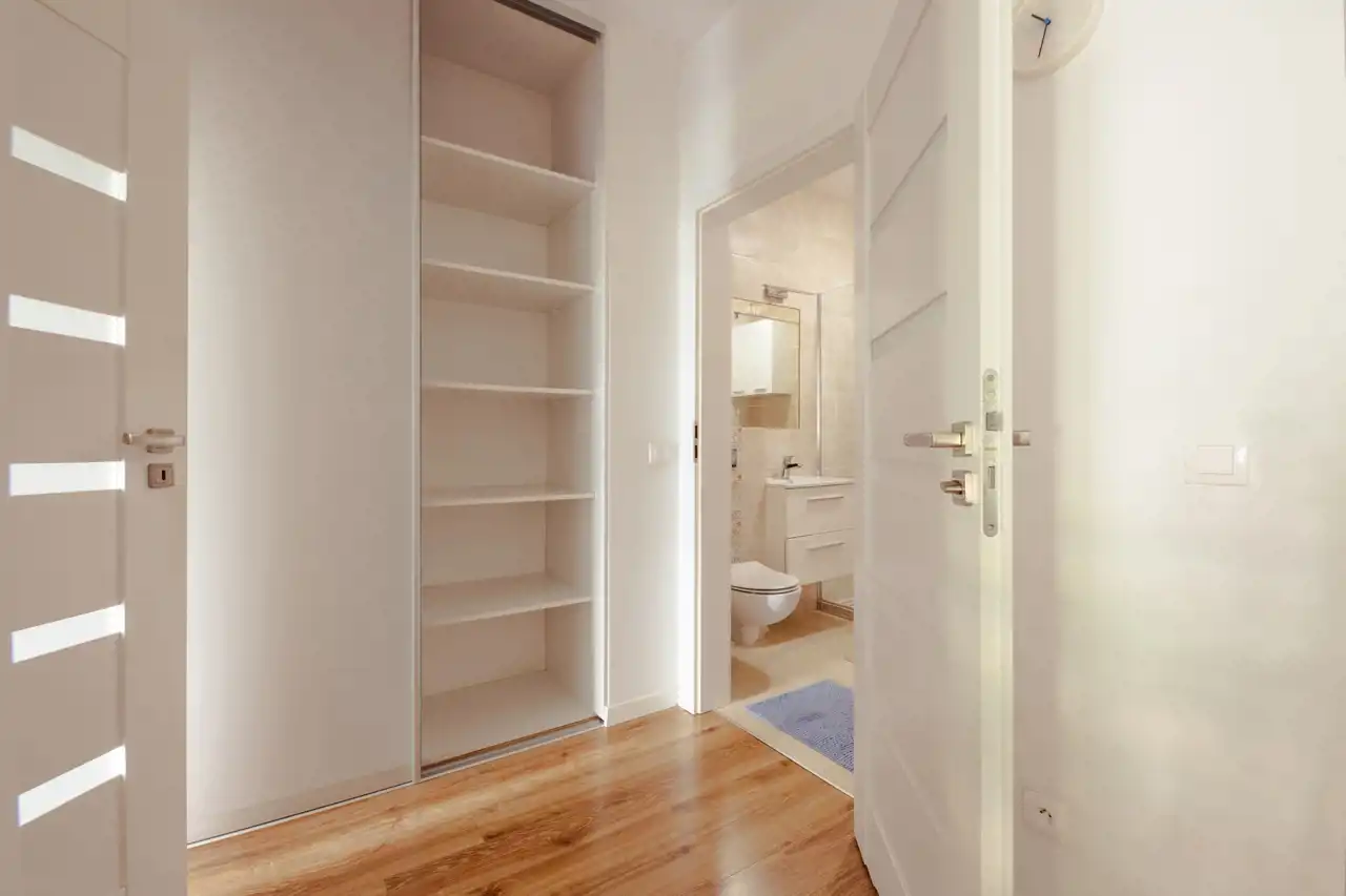 Mieszkanie w pełni umeblowane, duża wnękowa szafa z łatwością pomieści wszelkie niezbędne rzeczy.