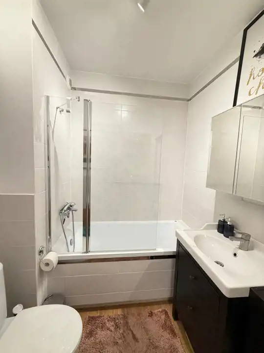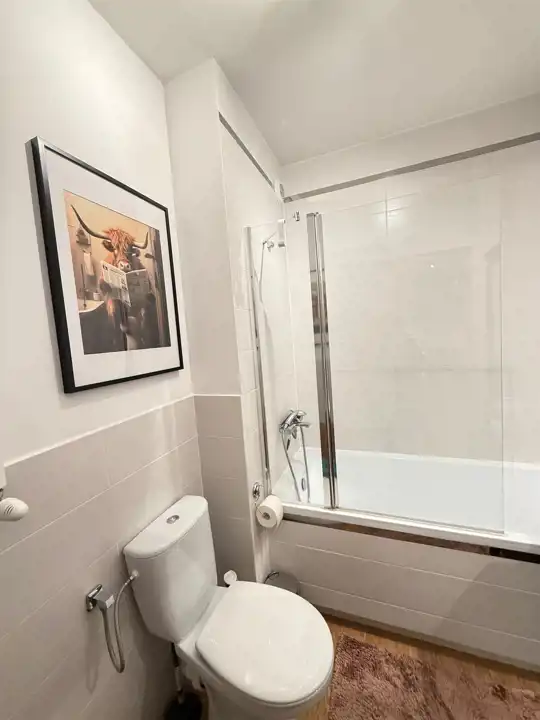 - łazienka wraz z WC wyposażona w wannę z szybą.