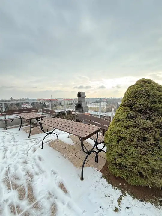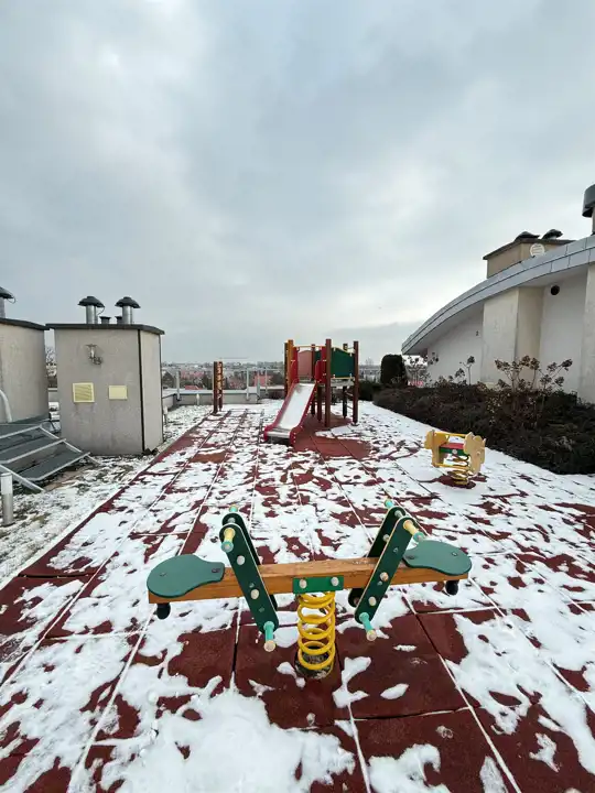 Na dachu budynku znajduje się piękny ogród z grillami, placem zabaw dla najmłodszych gdzie można spędzać czas na świeżym powietrzu i korzystać z pięknych widoków na panoramę miasta.