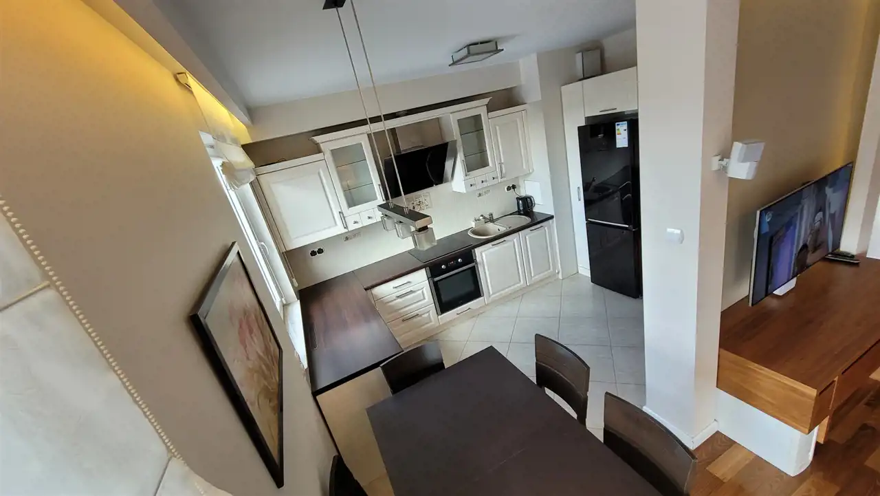 • Mieszkanie w pełni umeblowane, wykończone w wysokim standardzie - podłogi drewniane (akacja), meble na zamówienie , zabudowy G-K. Salon nagłośniony systemem 5.1 BOSE. Telewizor Samsung LED na odchylanym uchwycie. W kuchni pełne wyposażenie AGD ( lodówka wysokiej klasy ,zmywarka, płyta grzewcza +piekarnik ,okap) ; w łazience pralka . Mieszanie wyposażone w klimatyzację : klimatyzacja Samsung ;podłączony jest internet ( światłowód).