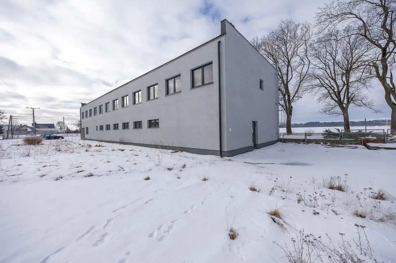 - Budynek produkcyjny - 1 517 m², solidna konstrukcja stalowo-murowana, wyposażony w rampę na całej długości oraz ogrzewanie gazowe.