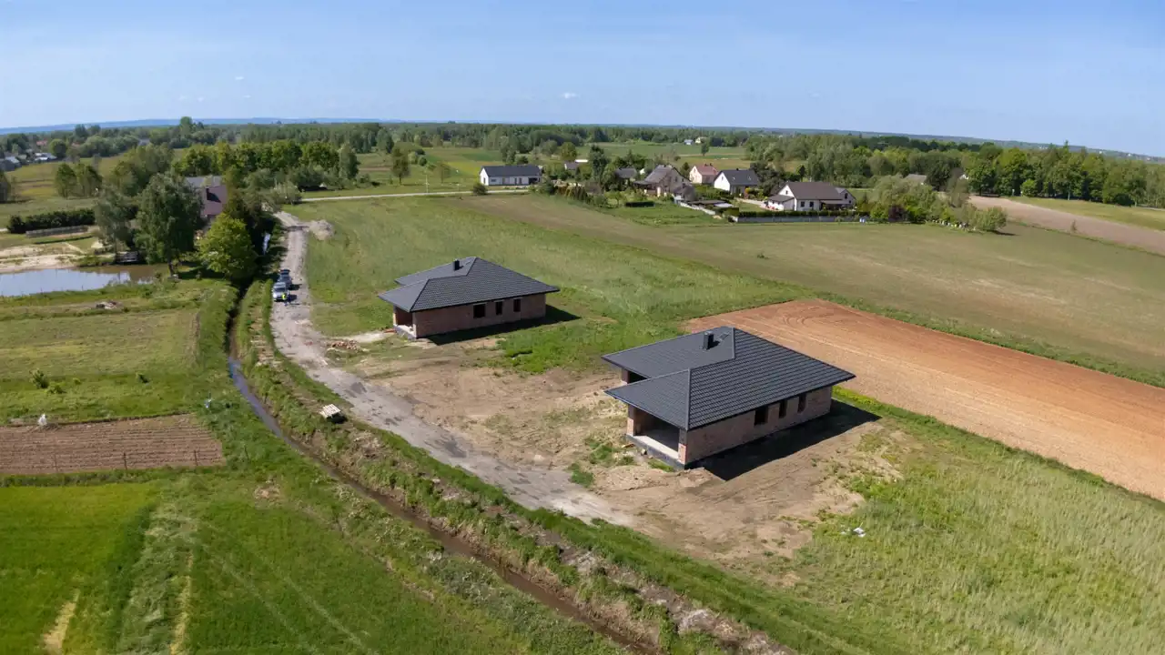 Nieruchomość jest w stanie surowym otwartym, co pozwala na dowolną aranżację wnętrz według własnych upodobań. Na działce dostępne są wszystkie media: prąd, gaz oraz woda. Dodatkowo istnieje opcja zakupu z wstawionymi oknami za dopłatą 30 000 zł.