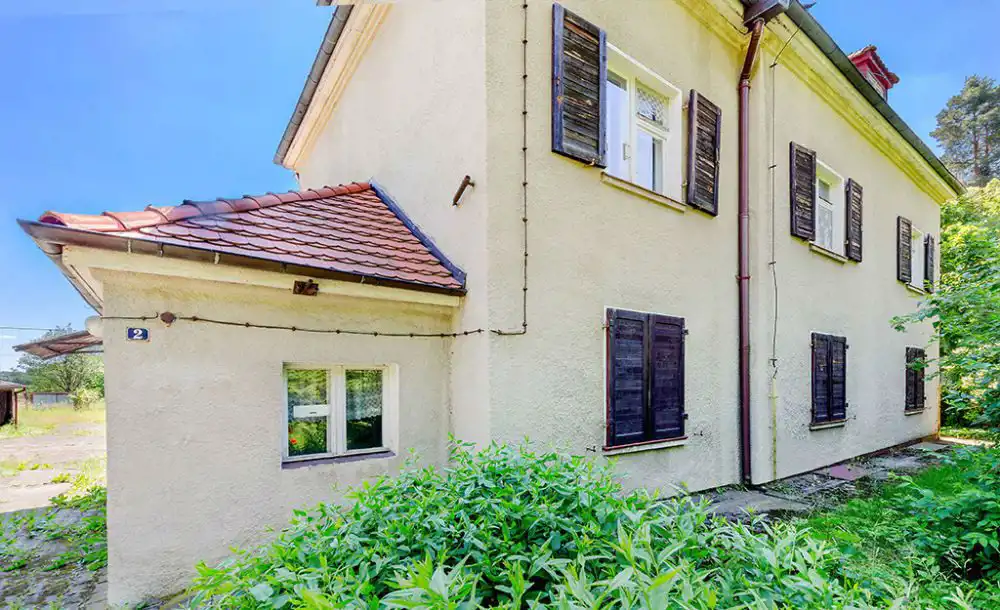 Część mieszkalna (aktualnie nieużytkowana) jest całkowicie podpiwniczona, trzykondygnacyjna z poddaszem użytkowym.