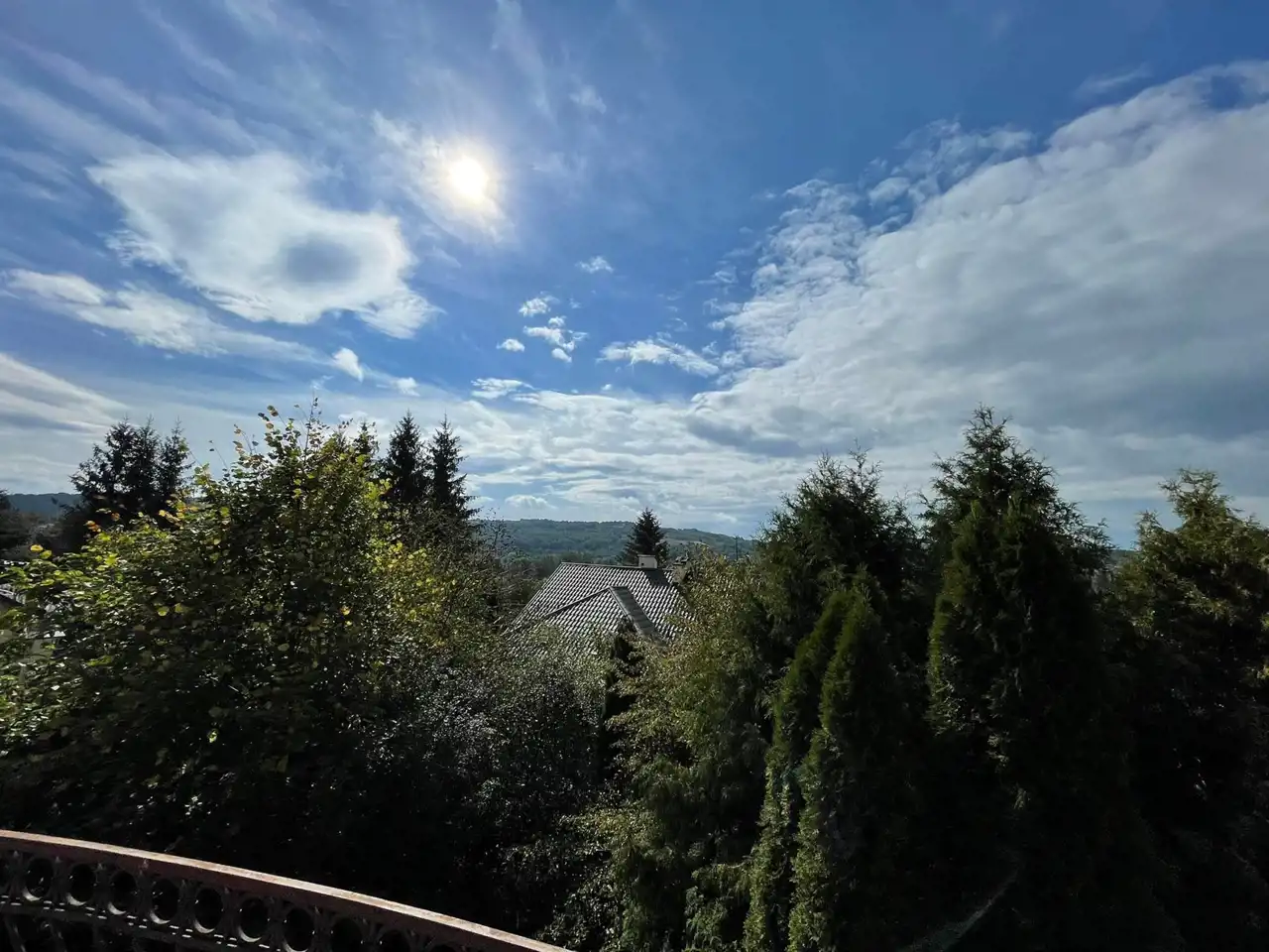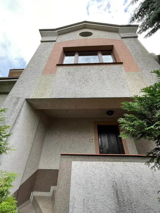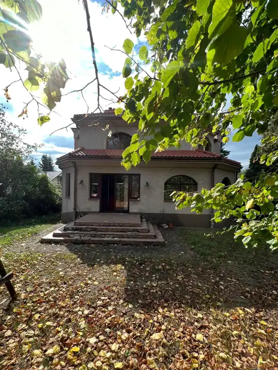 Ciekawa bryła budynku oraz piękne drzewa nadają klimat owej nieruchomości.