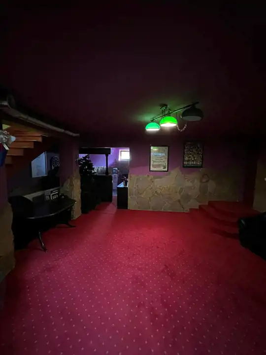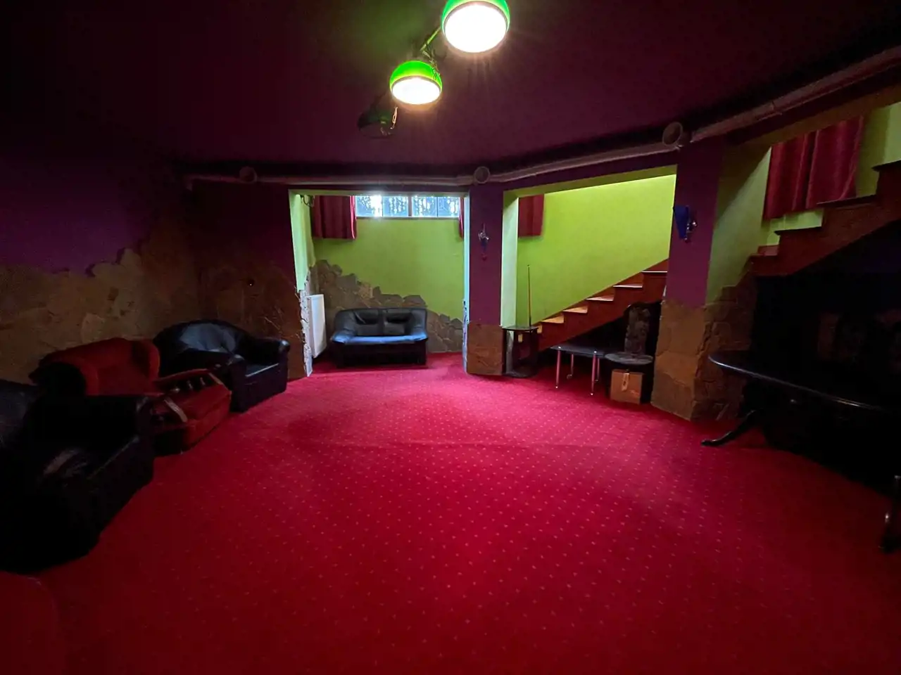 Klimatyczne schody prowadzą do sali z miejscem na bilard. Z tego pomieszczenia możemy przejść do pomieszczeń z sauną oraz do pralni, kotłowni i garażu.