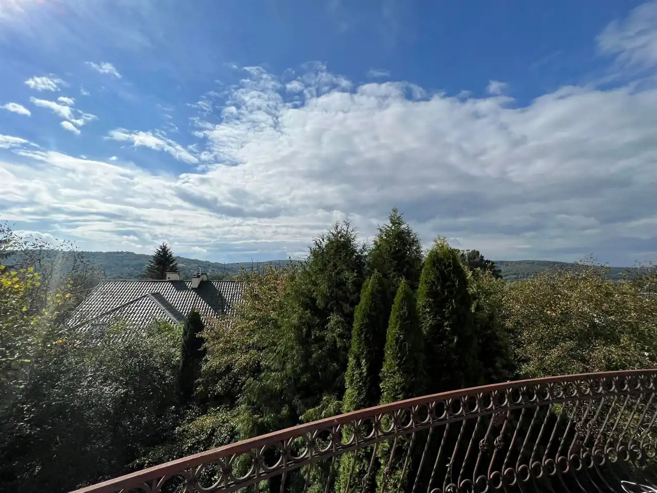 Udając się na piętro budynku znajdziemy 6 pomieszczeń sypialnianych . W dwóch pokojach wyjścia na balkony . Balkony duże z miejscem na stół z krzesłami . Z nich rozpościera się piękny widok.