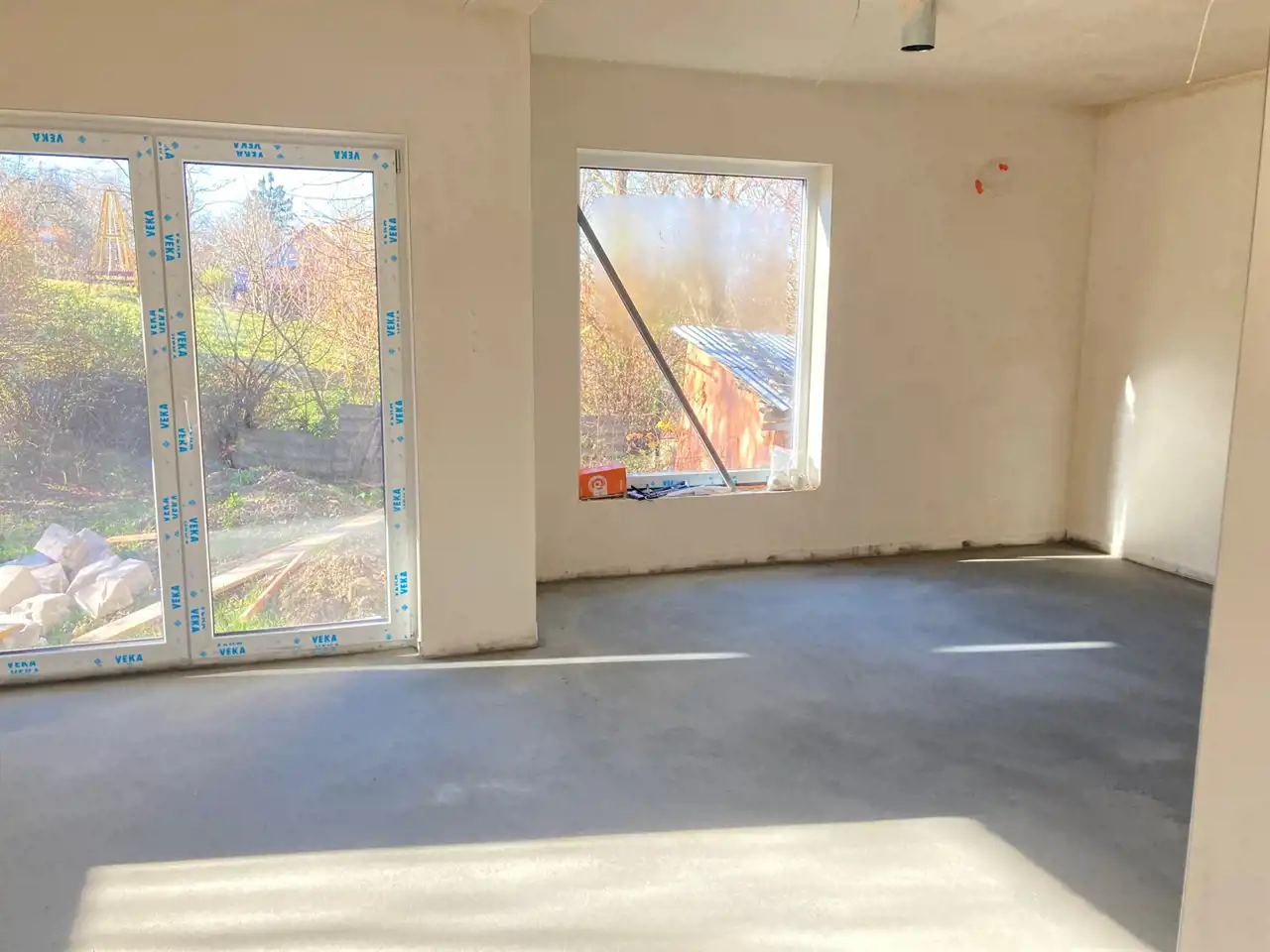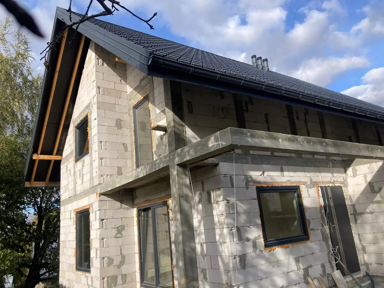 Nieruchomość budowana z zachowaniem ważnych elementów domu nowoczesnego: rekuperacja, ogrzewanie podłogowe, wejście do bram i wideofonu, brama automatyczna Wiśniewska, blachodachówka, okna Veka, tynki gipsowe Knauf,