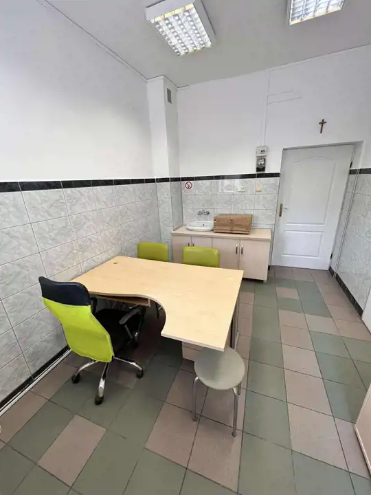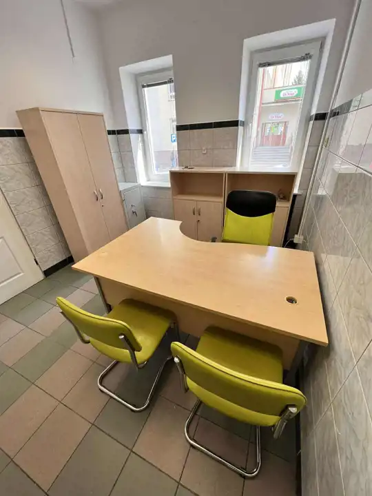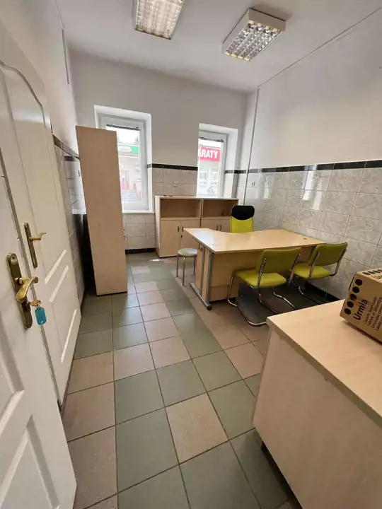W gabinecie są meble i sejf. Lokal jest dobrze nasłoneczniony ponadto znajdują się najpotrzebniejsze elementy sanitarne.