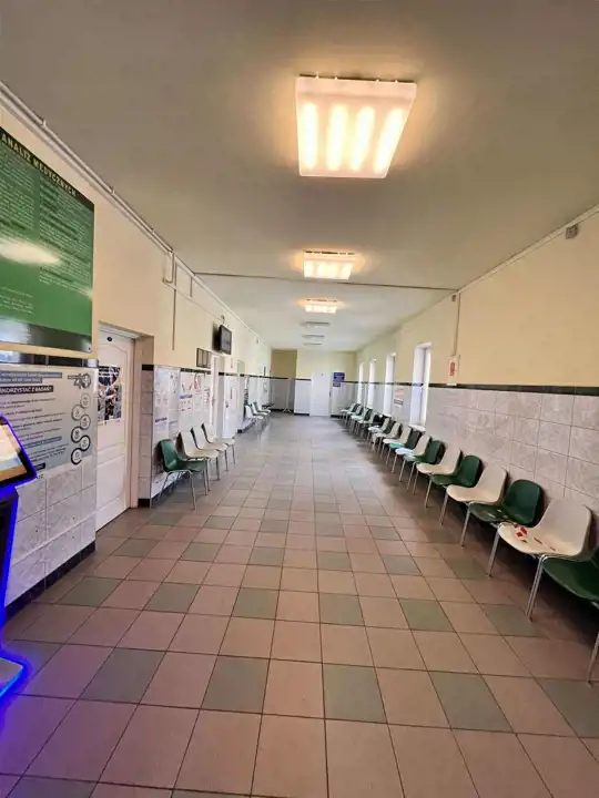 Do pomieszczenia prowadzi wjazd dla osób niepełnosprawnych i także znajduje się portiernia i poczekalnia.