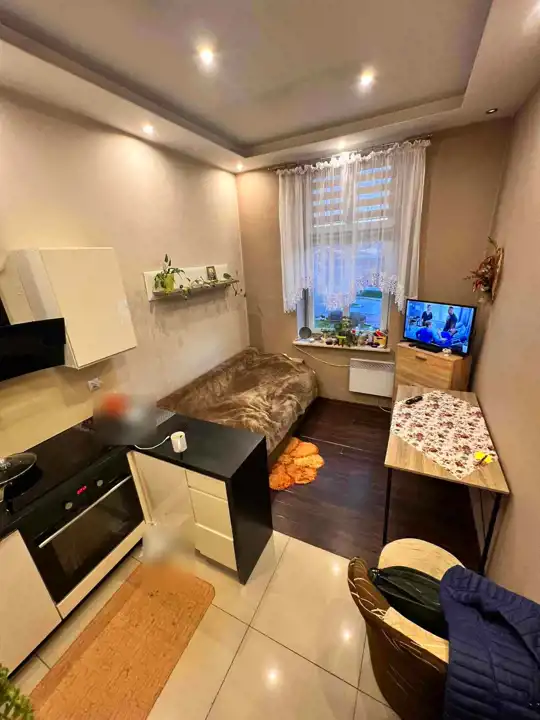 Składa się ono z przedpokoju, łazienki z WC , osobnego pokoju i pokoju połączonego z kuchnią.